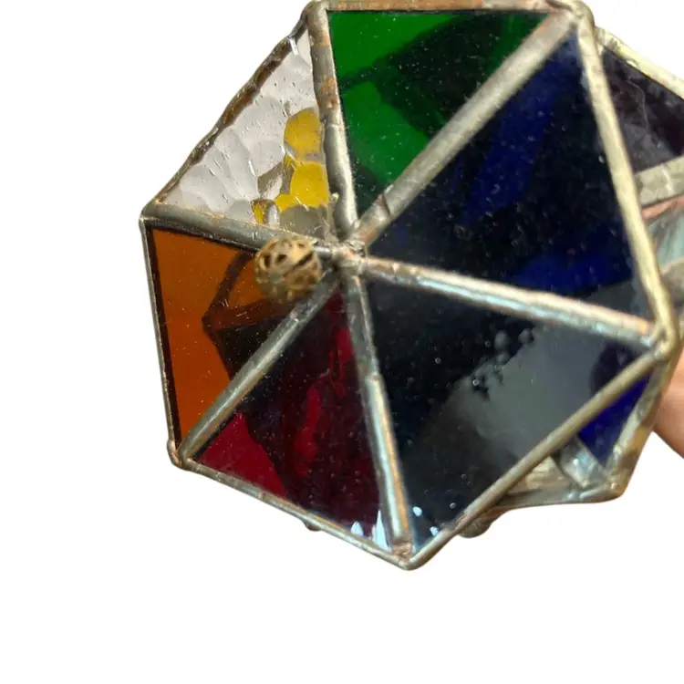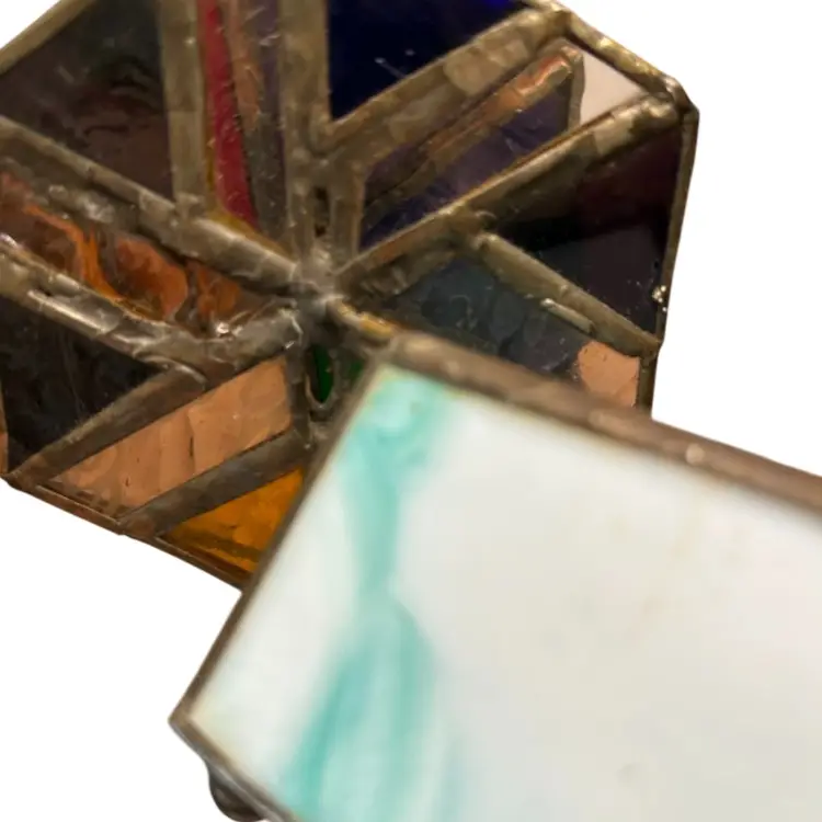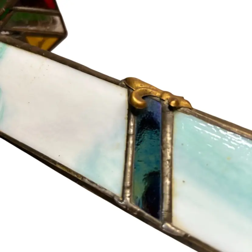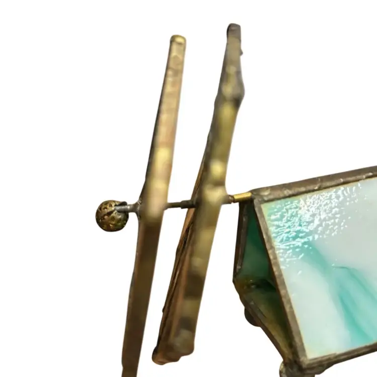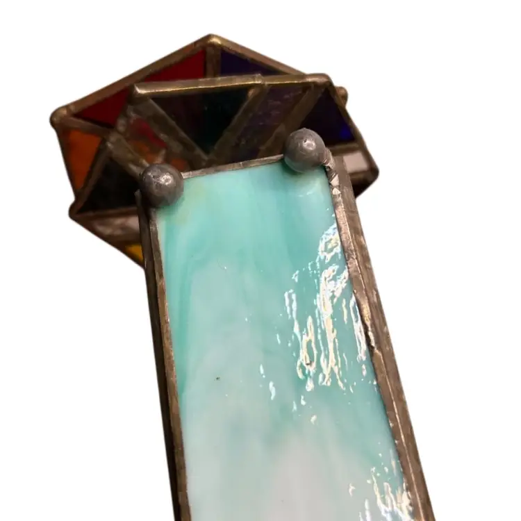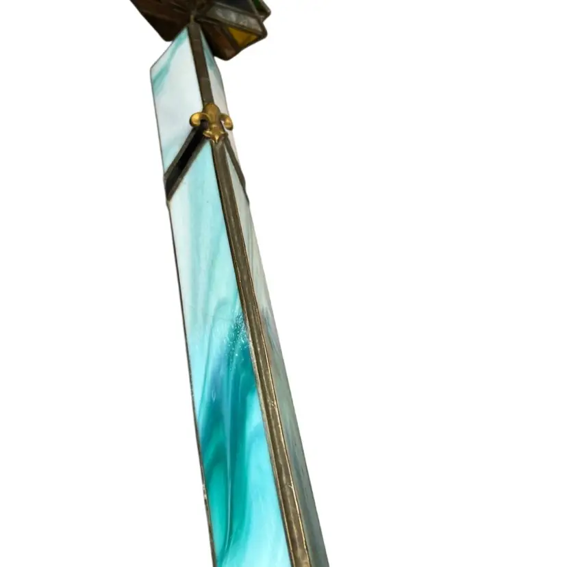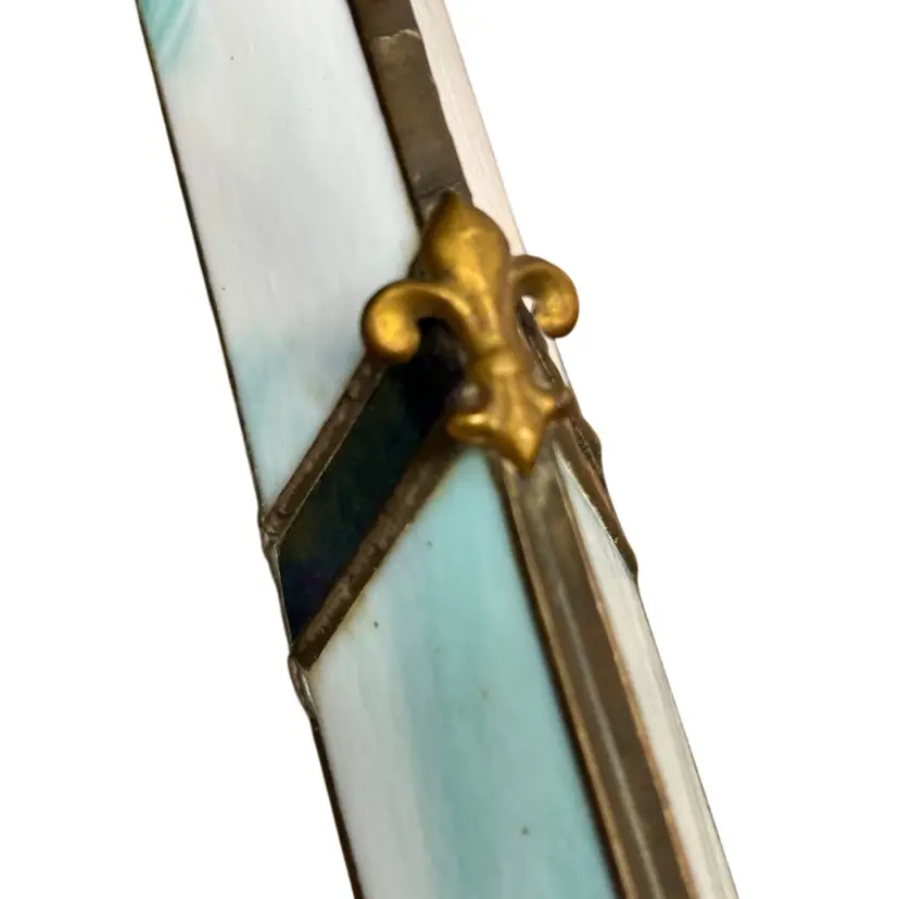 Beautiful Vintage Stained Turquoise/White Slag Kaleidoscope With Fleur De Lis Brass Emblem On Top “As Is”