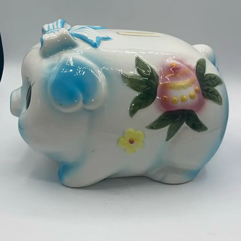 Big Eyes Piggy Bank Kitsch, Large Ceramic Vintage MCM 10” X6”