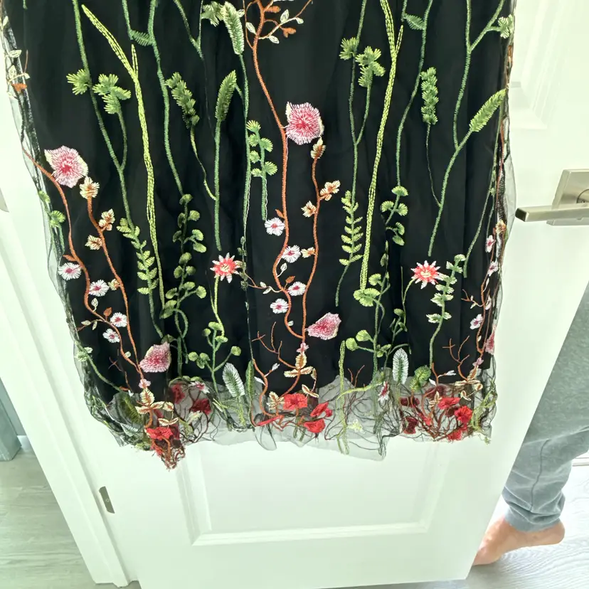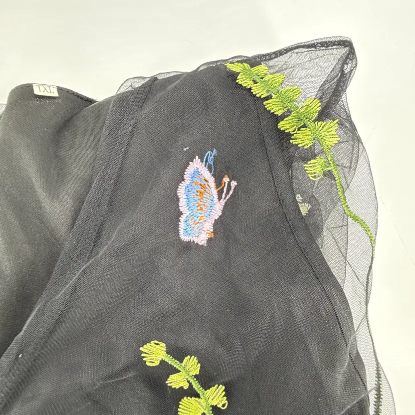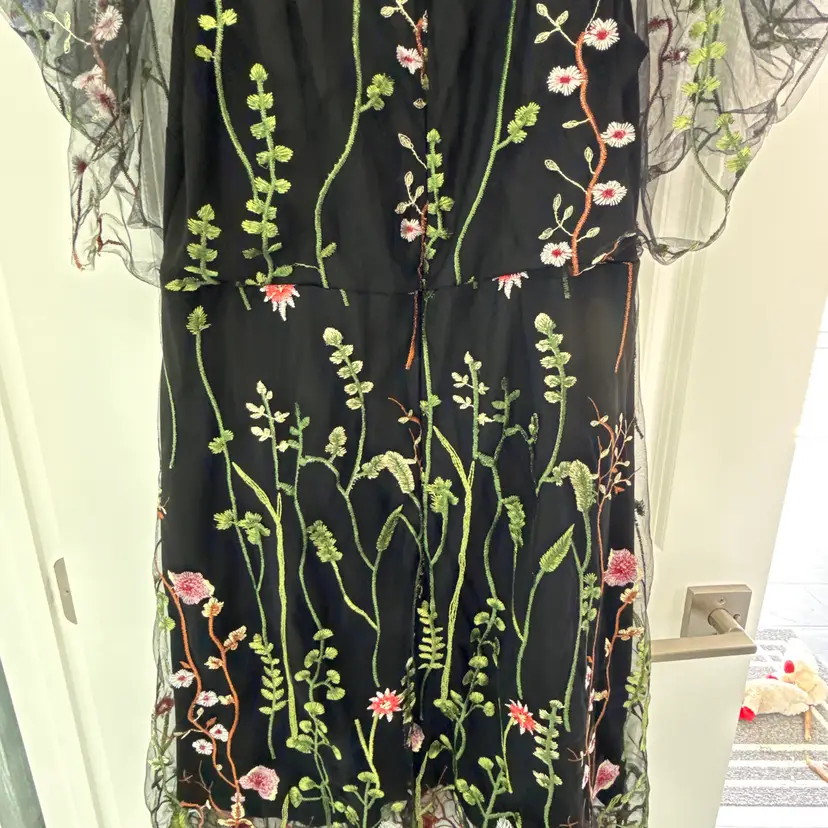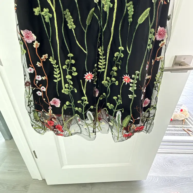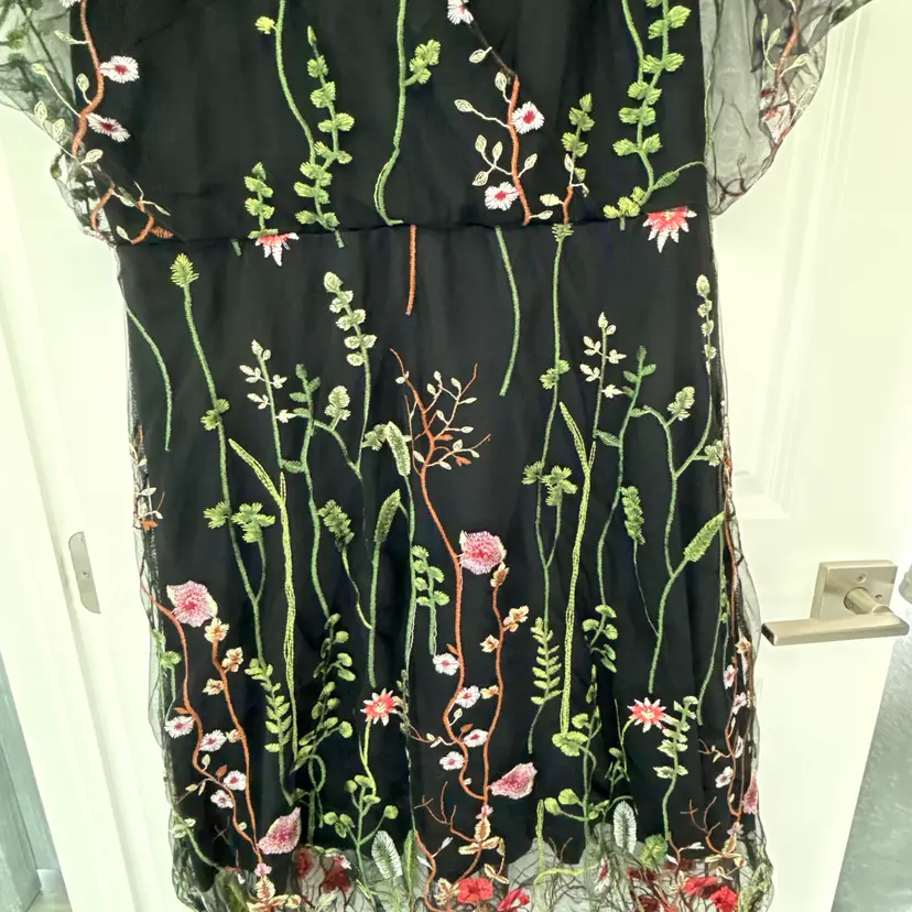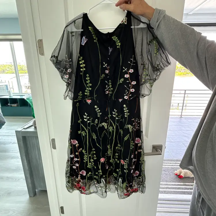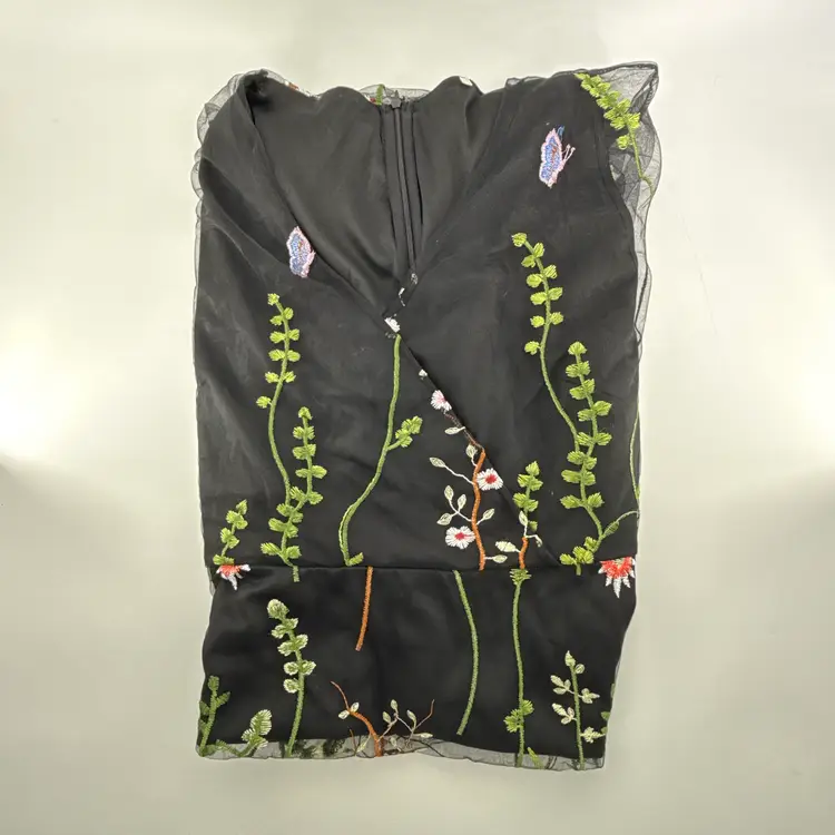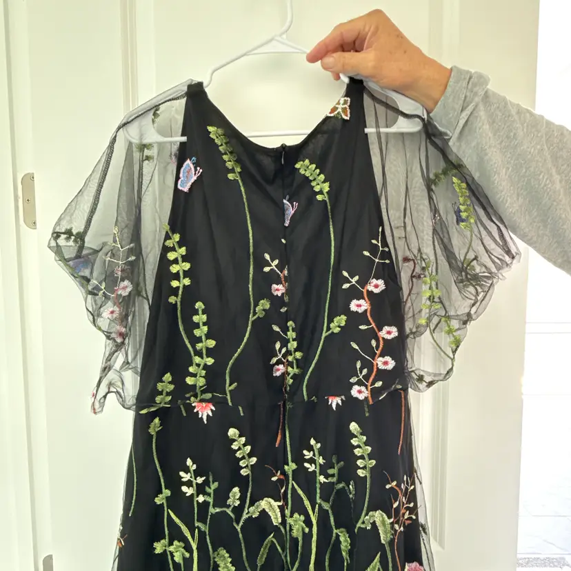 Black Lined Woman's Dress Size 1XL (READ description) With Butterflies Sheer Over Lined Embroidered