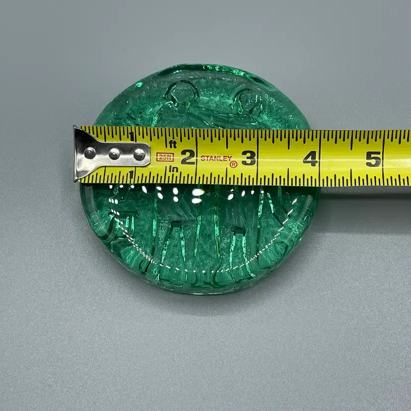 This awesome paperweight is 4 inches across and has no chips or cracks. It does have some minor scratches and scuffs from use.