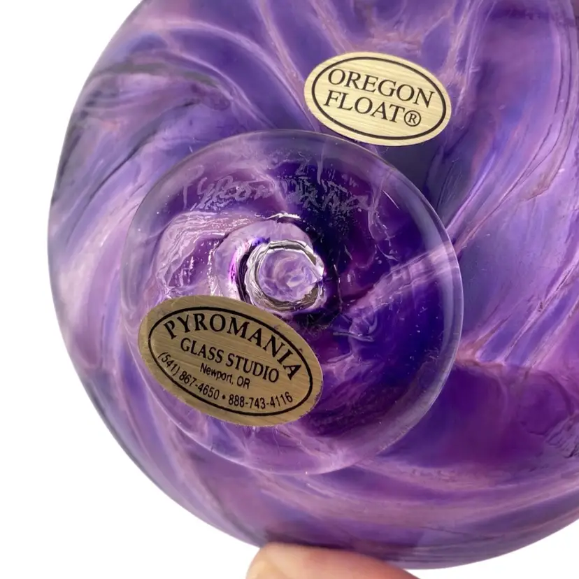Blown Glass Ball Purple Pyromania Glass Oregon Float Signed 7”