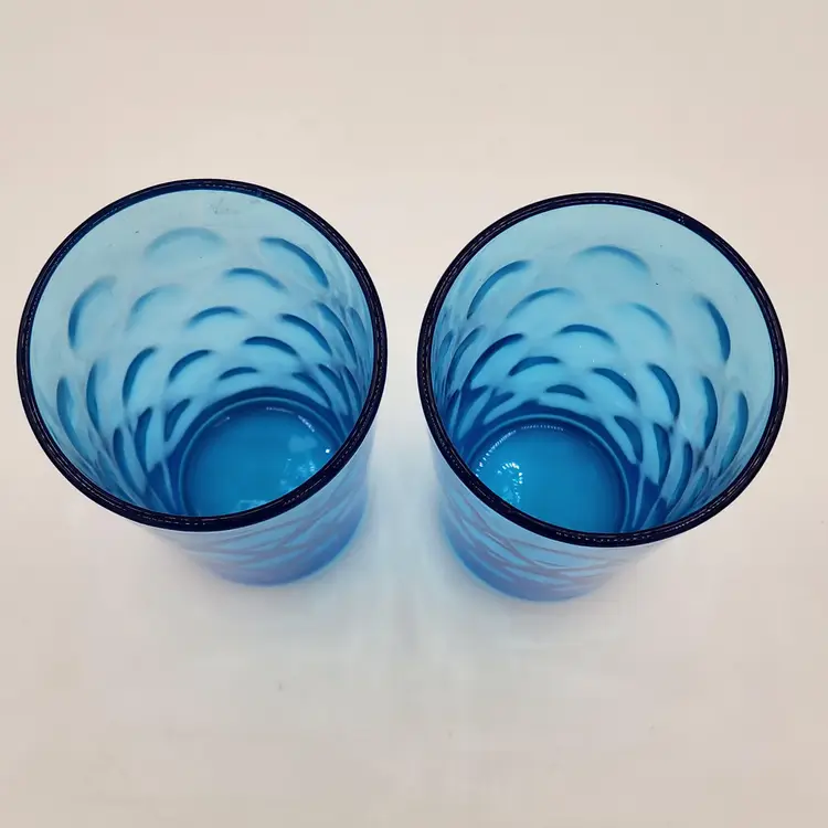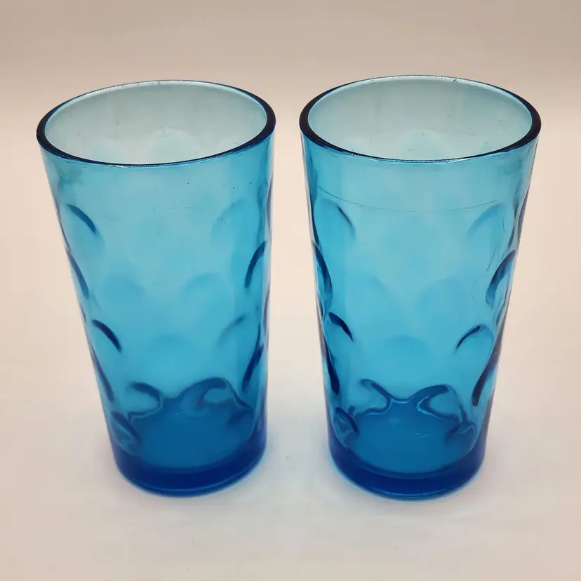 Possibly 1960's Hazel Atlas El Dorado Blue Aqua Optic Dot/Thumbprint Glasses - Two glasses total. These are great to add to your colored glass collection!