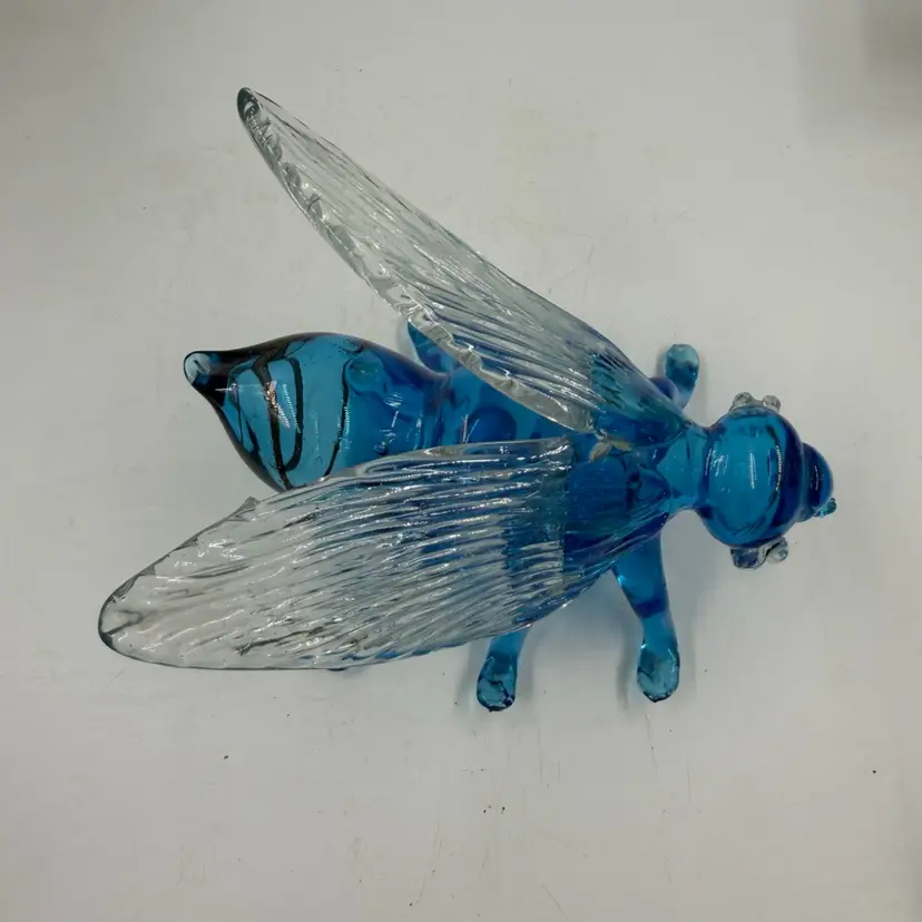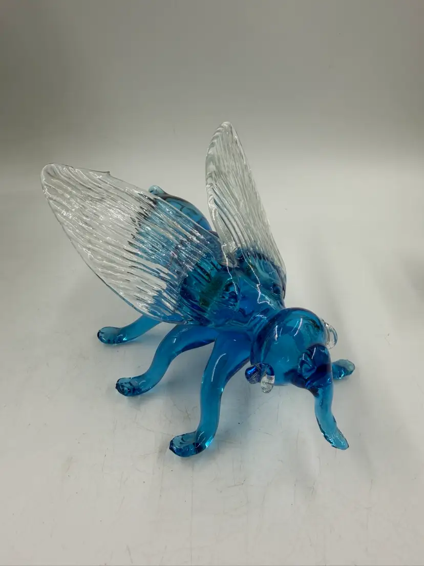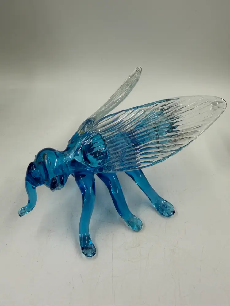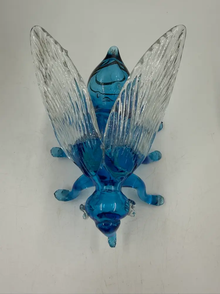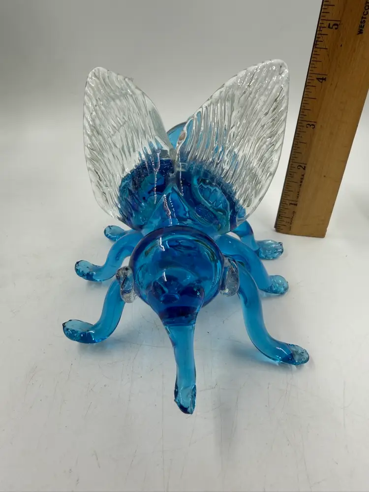 Blue Art Glass Fly With Clear Glass Wings Does Have Some Rough Edges But No Chips Or Cracks. 4” T 6.5” Long 5” wide