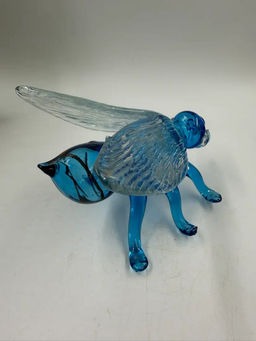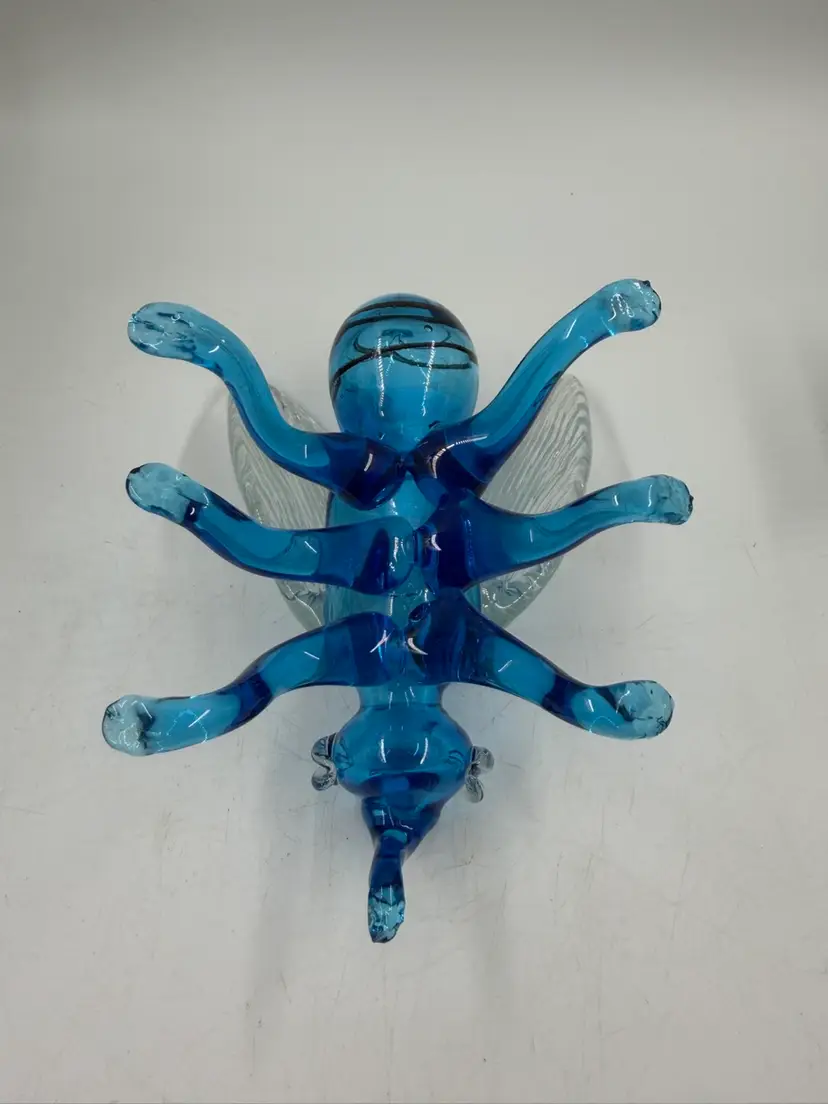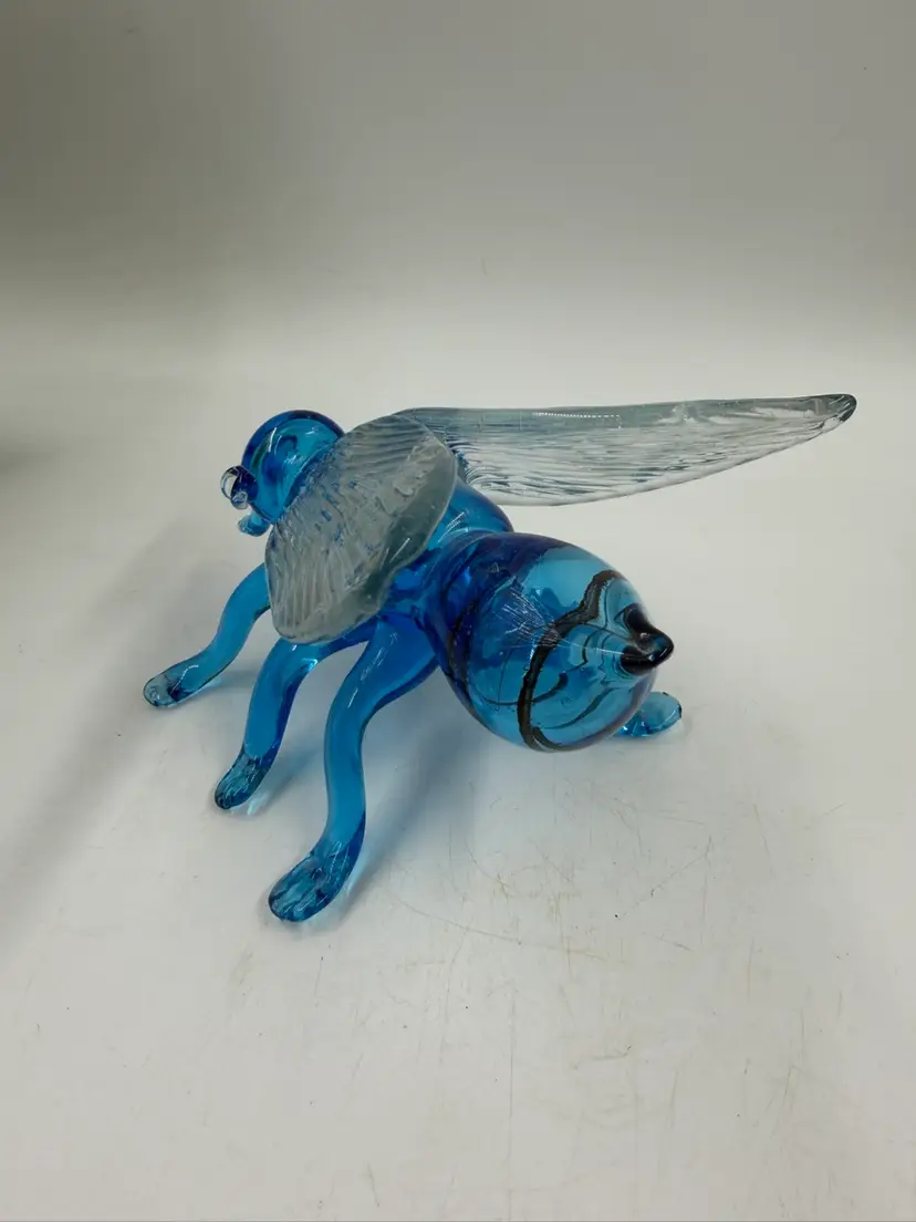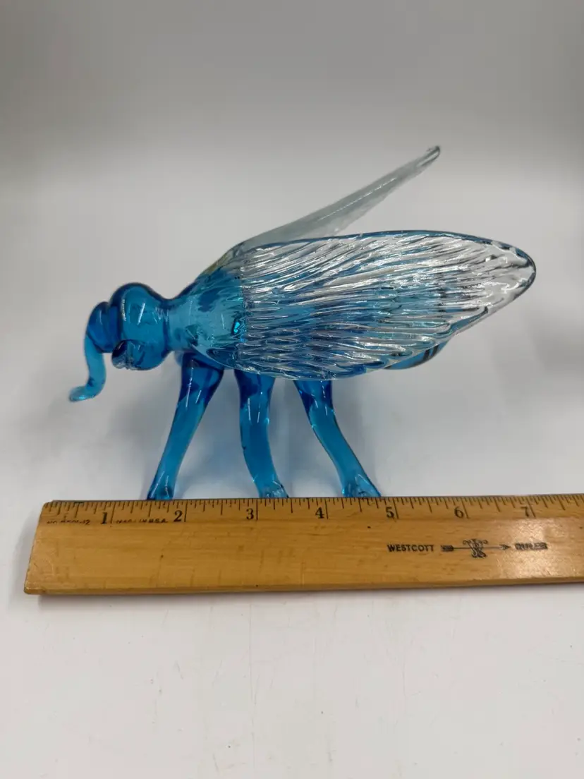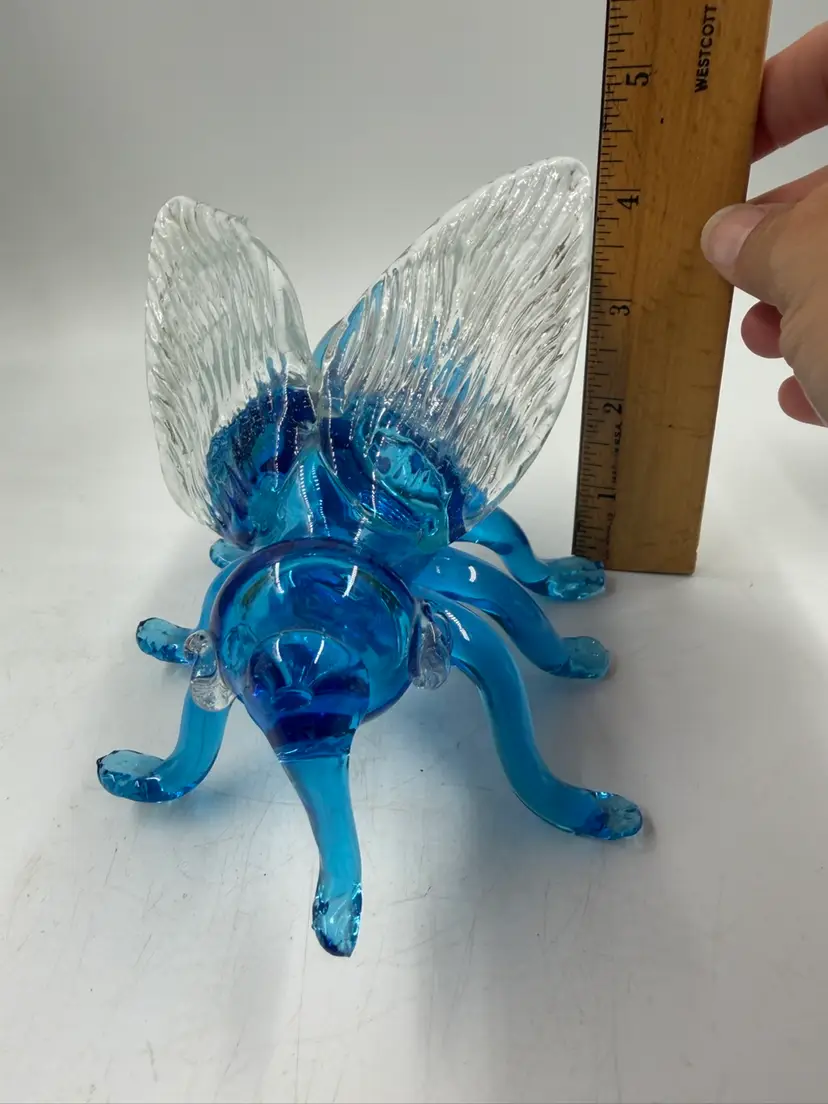 Blue Art Glass Fly With Clear Glass Wings Does Have Some Rough Edges But No Chips Or Cracks. 4” T 6.5” Long 5” wide