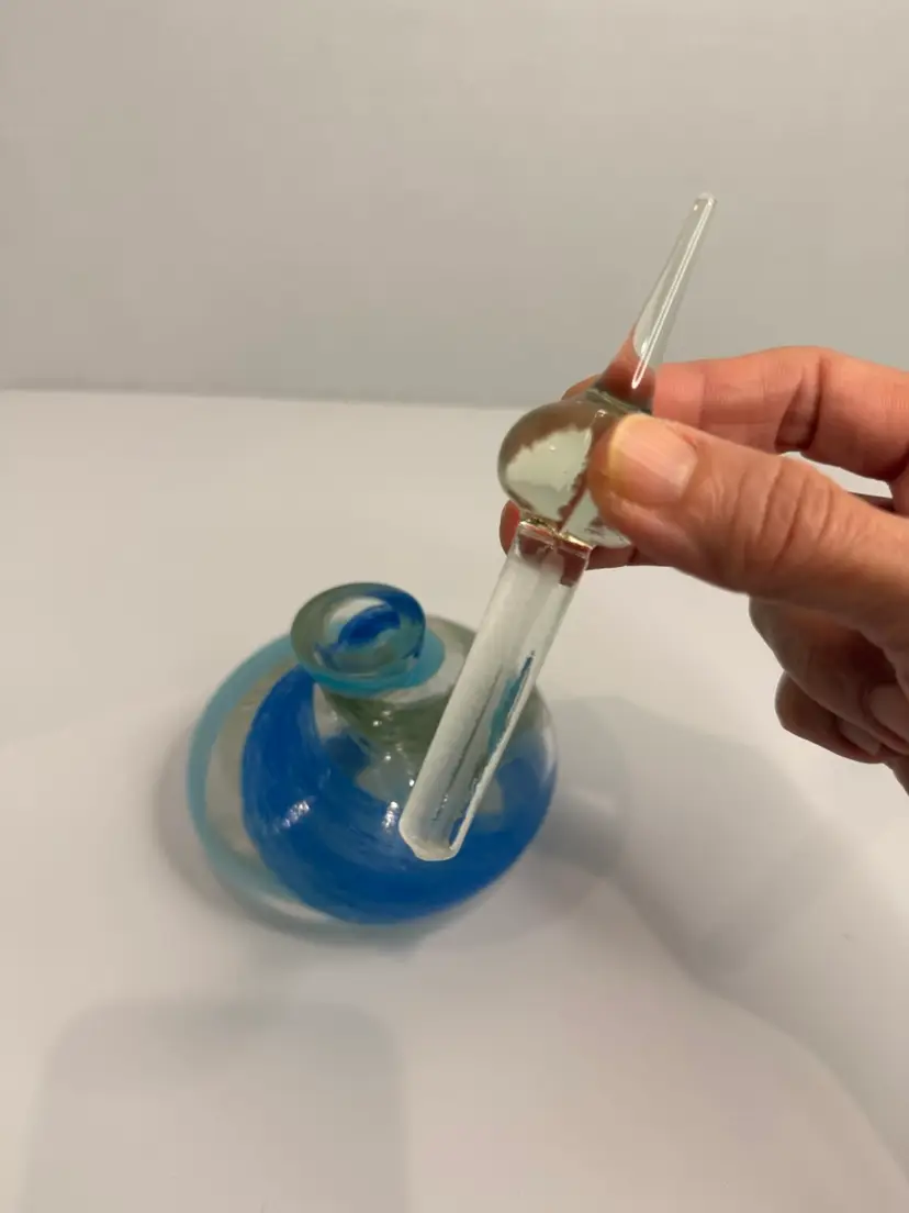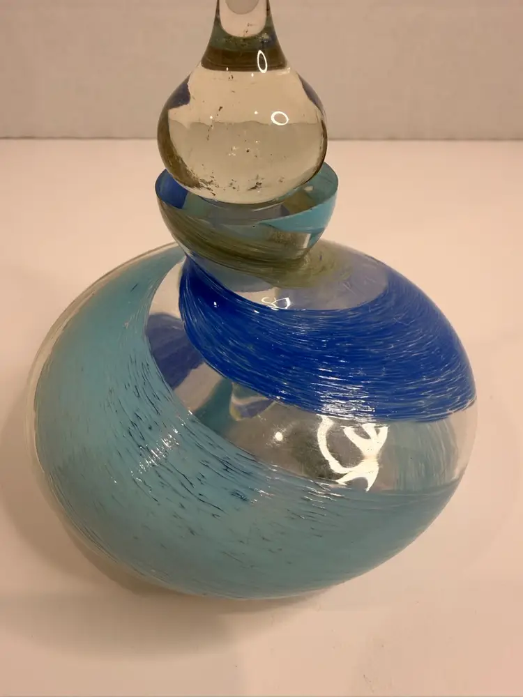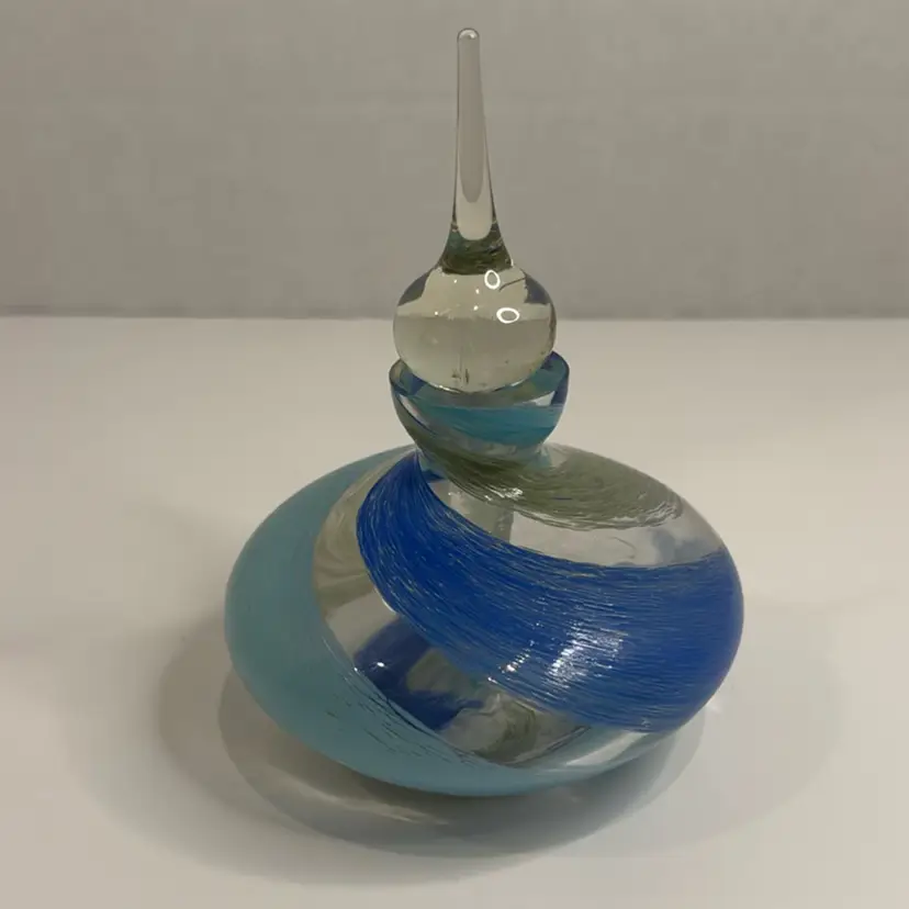 Blue Swirl Art Glass Perfume Bottle With Stopper