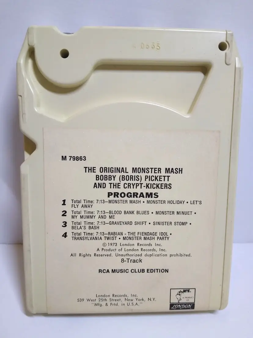 Features: Vintage Custom Bundle: No Format: 8-Track Cartridge Modified Item: No Country/Region of Manufacture: United States Material: Plastic Edition: Club Edition Record Label: London Subscription Service: RCA Release Title: The Original Monster Mash Artist: Bobby (Boris) Pickett And The Crypt-Kickers The Original Monste Release Year: 1973 Style: 1960s, Garage Rock Color: White Genre: Pop, Rock, Horror, Halloween, Surf, Mod, Novelty Case Condition: Excellent (EX) Type: Album