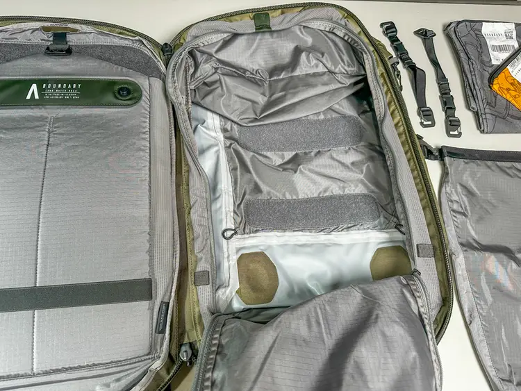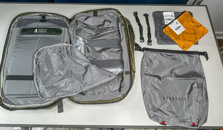 This listing is for a brand new, unused Boundary Supply Arris 35L Travel Backpack in the sought-after Olive Green colorway. A premium choice for travel, commuting, or minimalist one-bag living, the Arris system offers sleek organization, weather resistance, and modular flexibility. Comes with laundry dry bag that can be attached to clips inside.