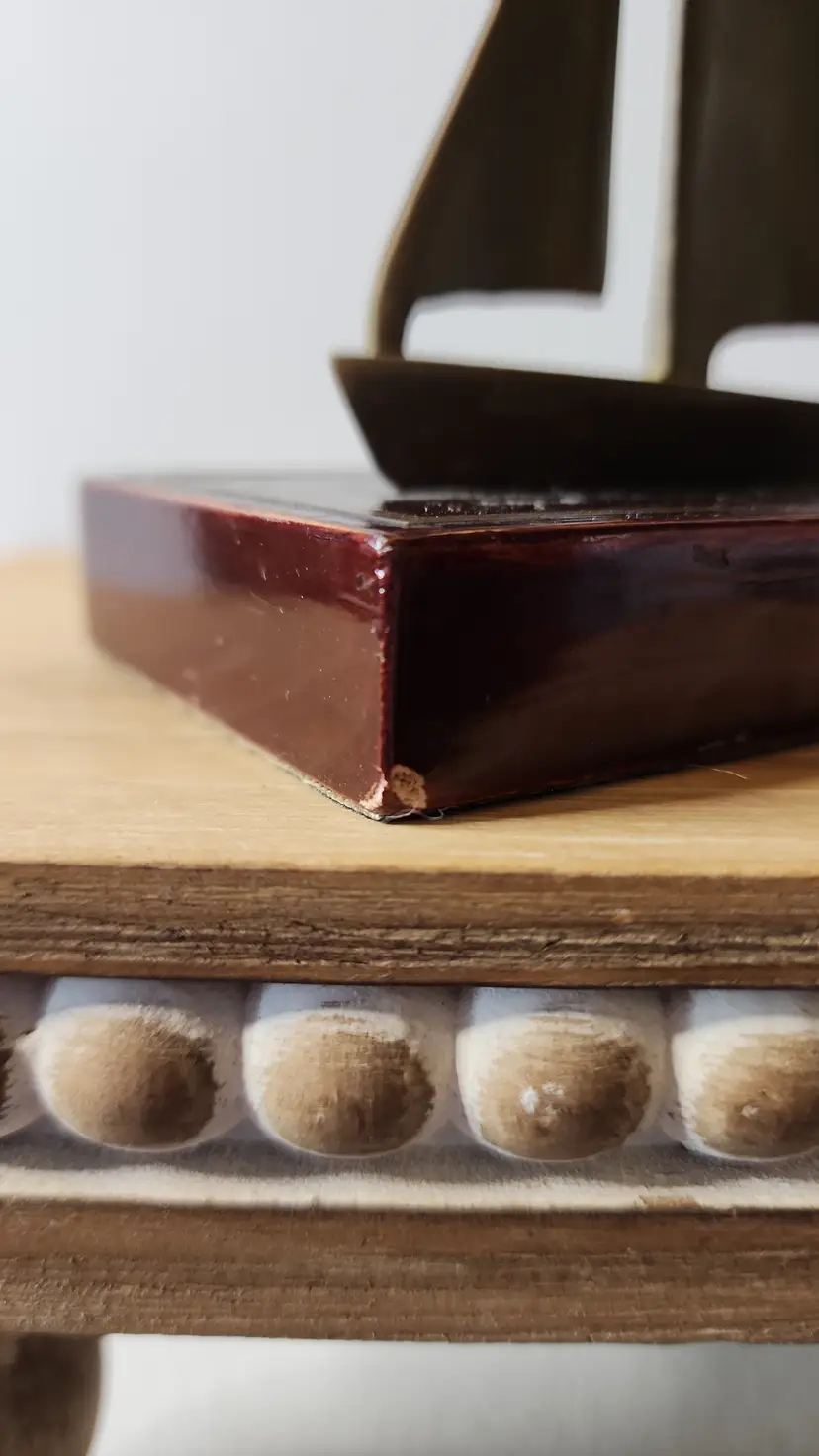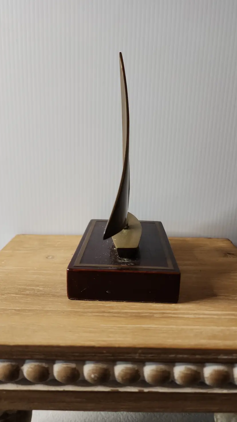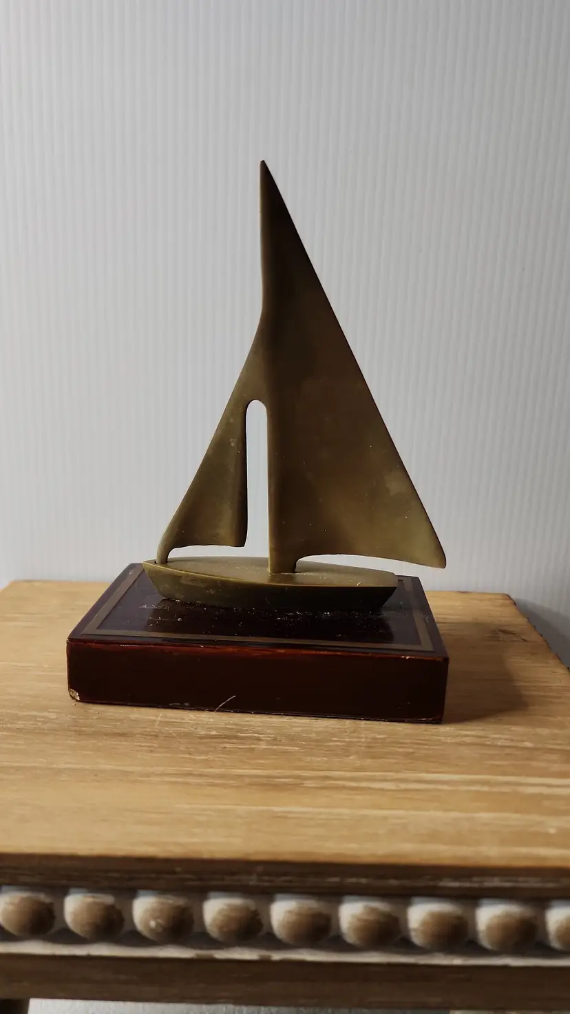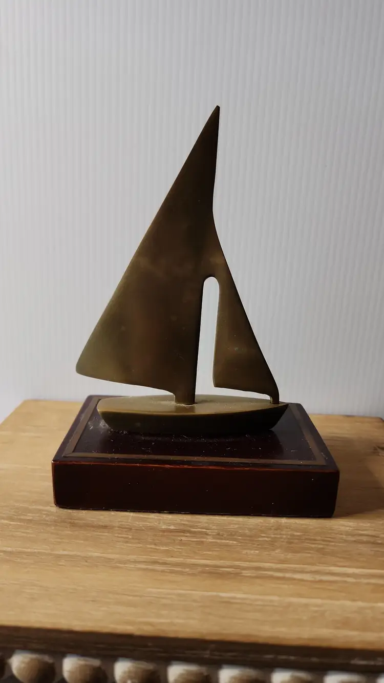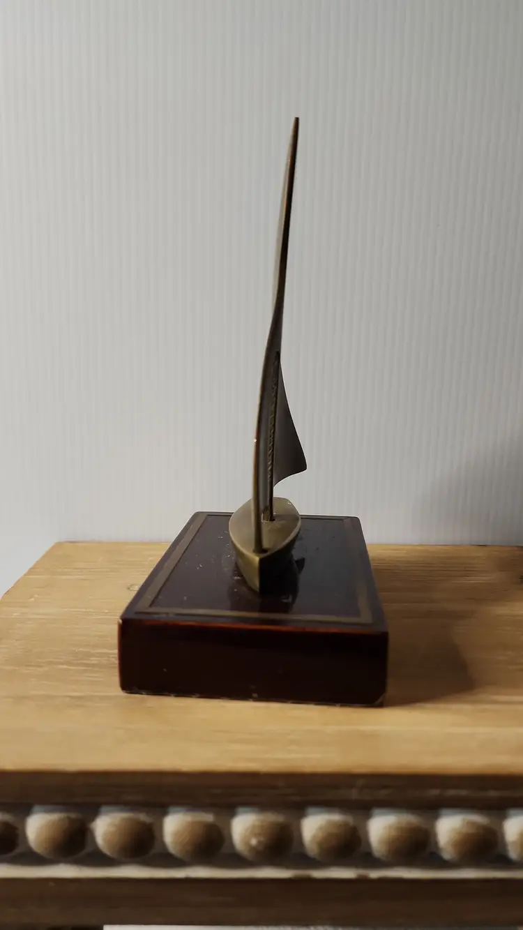 BRASS BOAT ON WOOD BLOCK