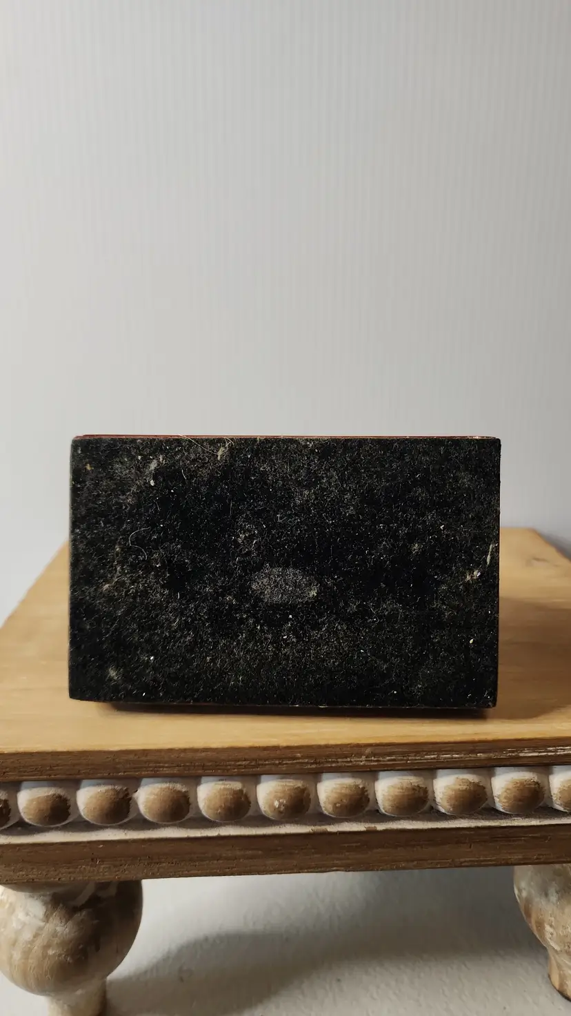 As shown 5.5 inches tall. 4 inches long 2.5 inches All pieces will show surface scratching, tarnish, discoloration etc due to age.