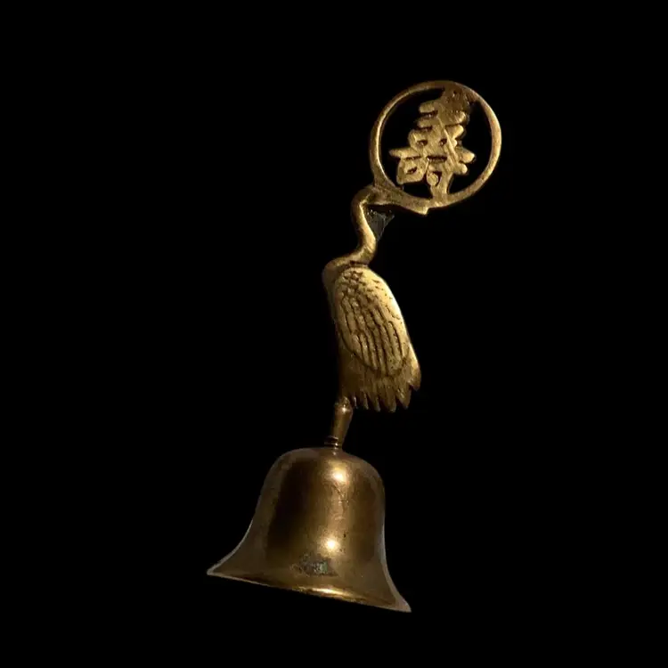 Solid brass vintage crane bell,Chinese character (longevity)good fortune,has Patina in some areas due to age