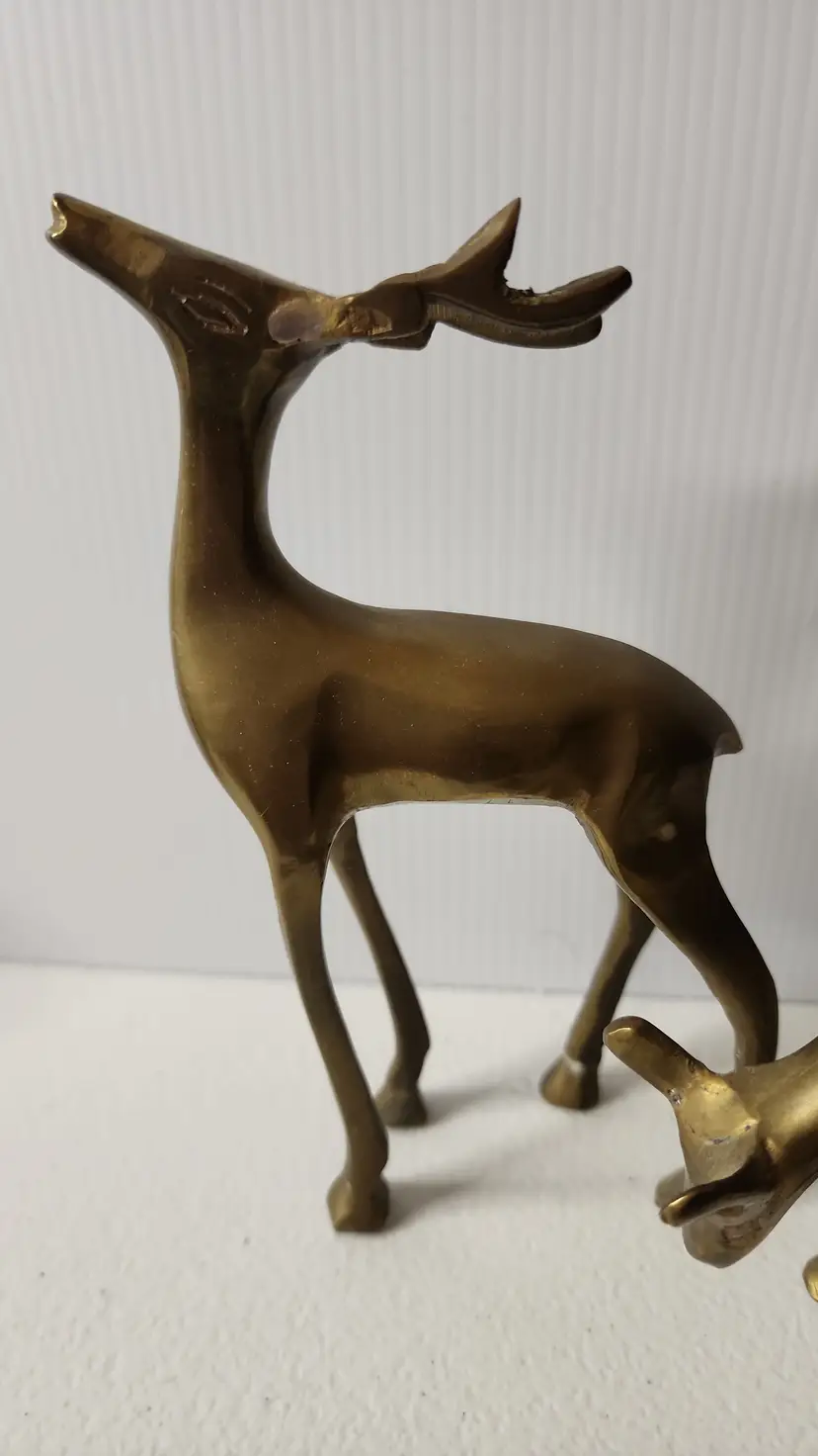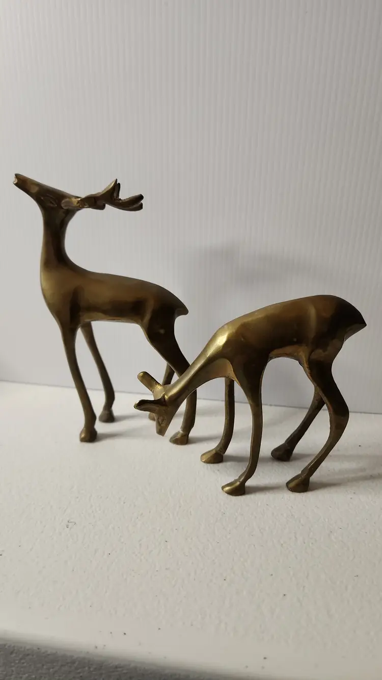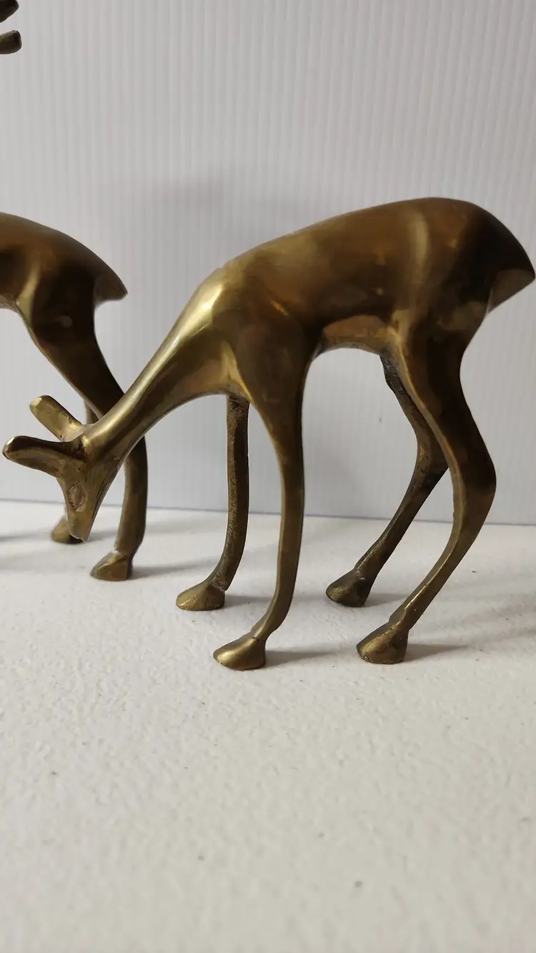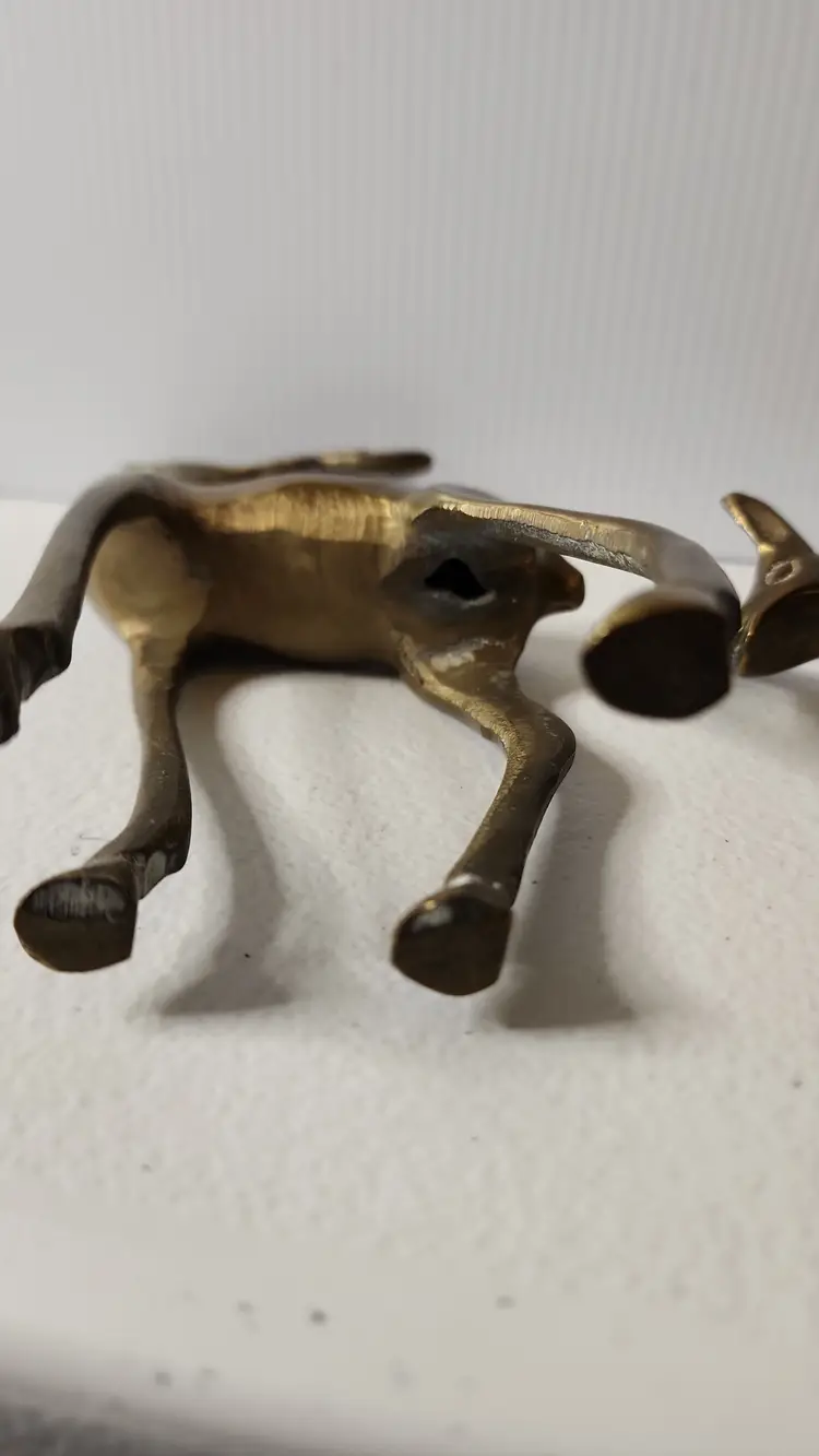 As shown slightly darker in color buck 6 inches tall3 inches wide doe 4.25 inches tall 4.5 inches long All pieces will show surface scratching, tarnish, discoloration etc due to age.
