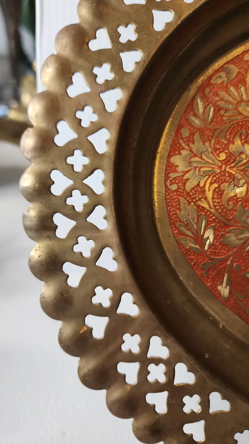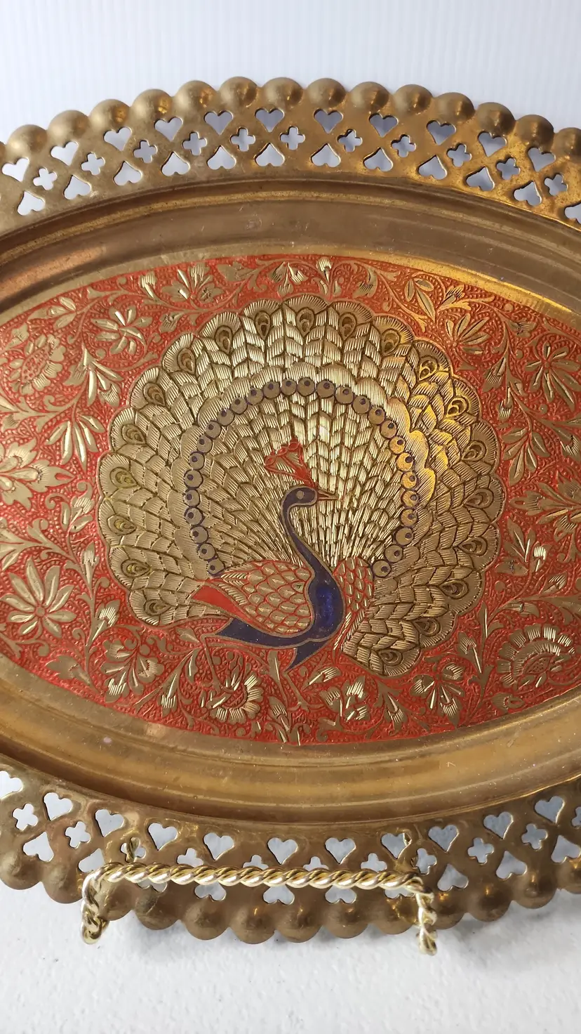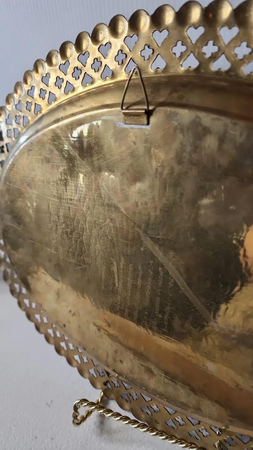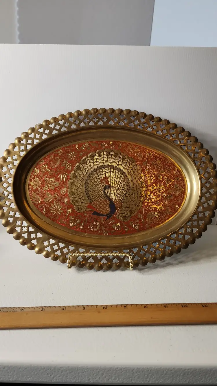 As shown 14 inches long 10 inches tall All pieces will show surface scratching, tarnish, discoloration etc due to age.