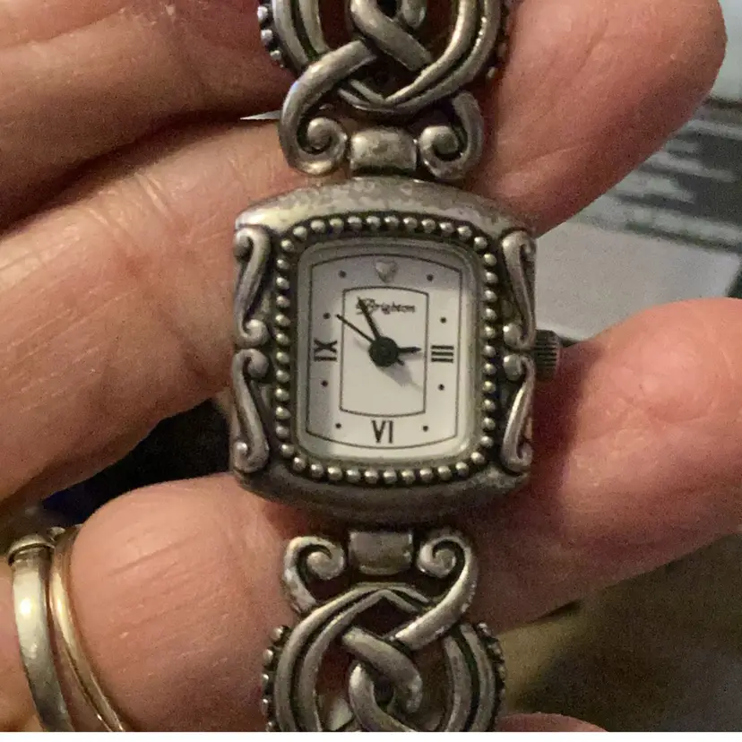 This is a Brighton Rosario watch it is working. It has a battery in. It is a toggle glass. It’s in great condition.