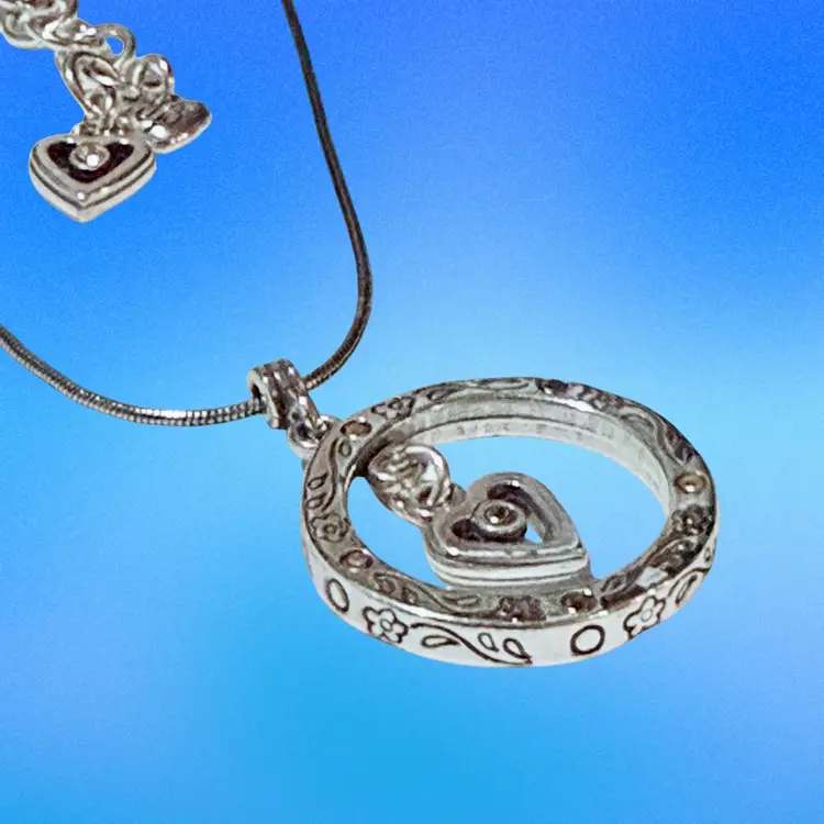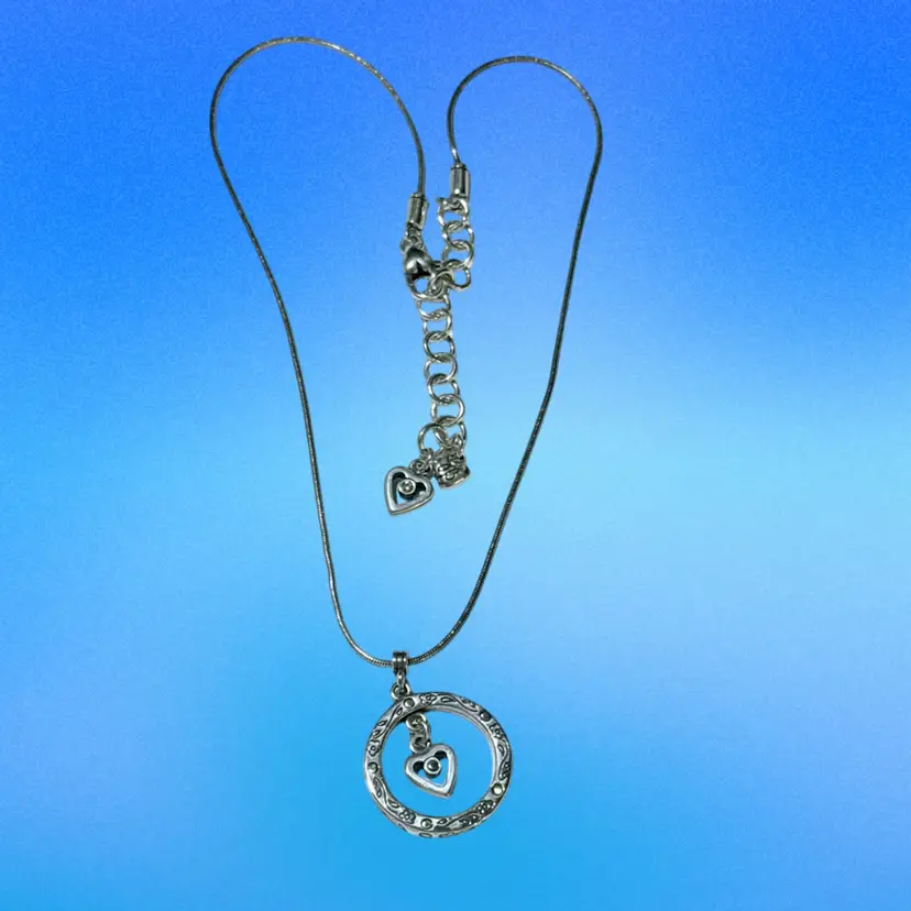 Brighton Trusting Heart Love Floral Etched Pendant w Heart Centerpiece Silver Plated Necklace w Crystal Accent