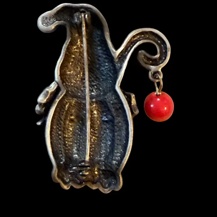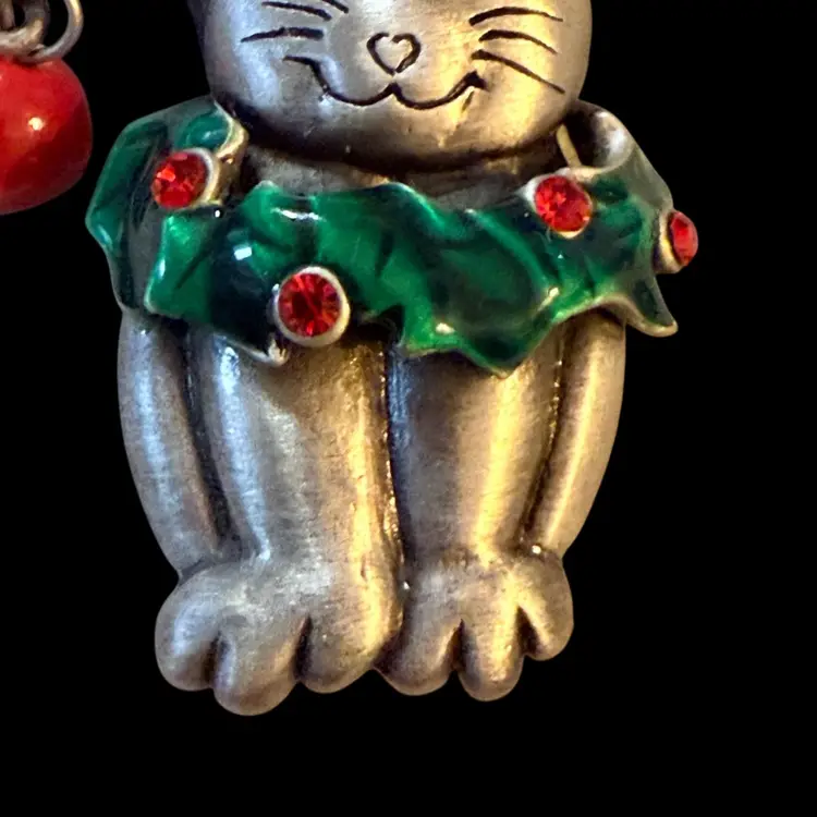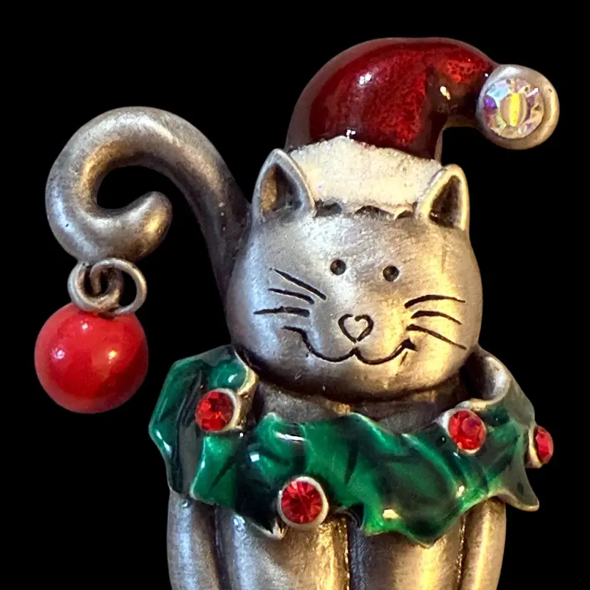 Brushed Silvertone Holiday Cat Brooch 2.75”