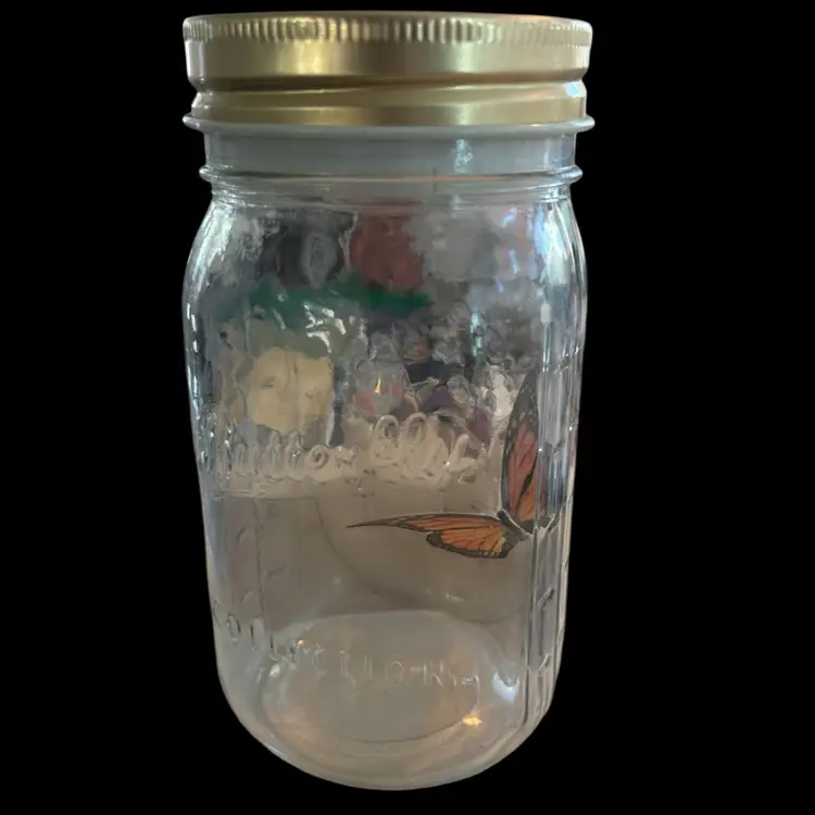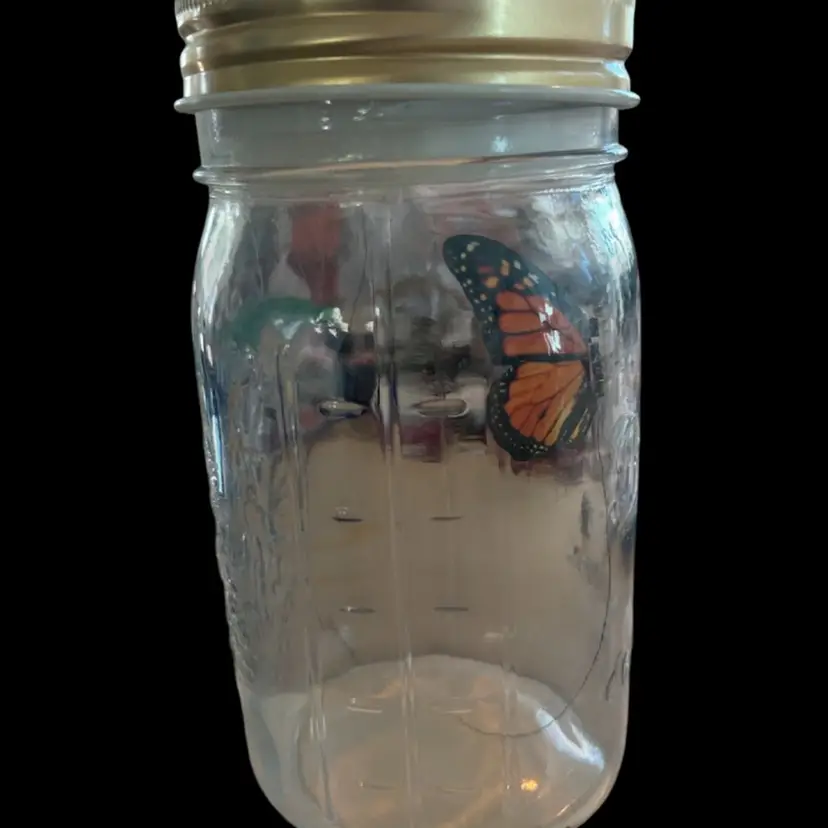 Interactive butterfly in a jar! When the lid is tapped or a noise is made the artificial butterfly flutters around inside the jar as if it were a real butterfly. 3 AAA required (not included) and it measures approximately 7” tall. (BSA1.5)
