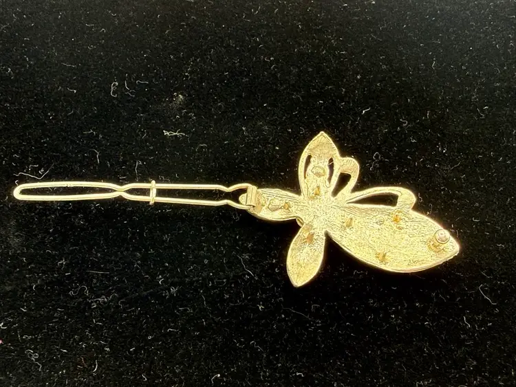 This is a vintage silver-tone butterfly hair clip with clear and iridescent crystal rhinestones.