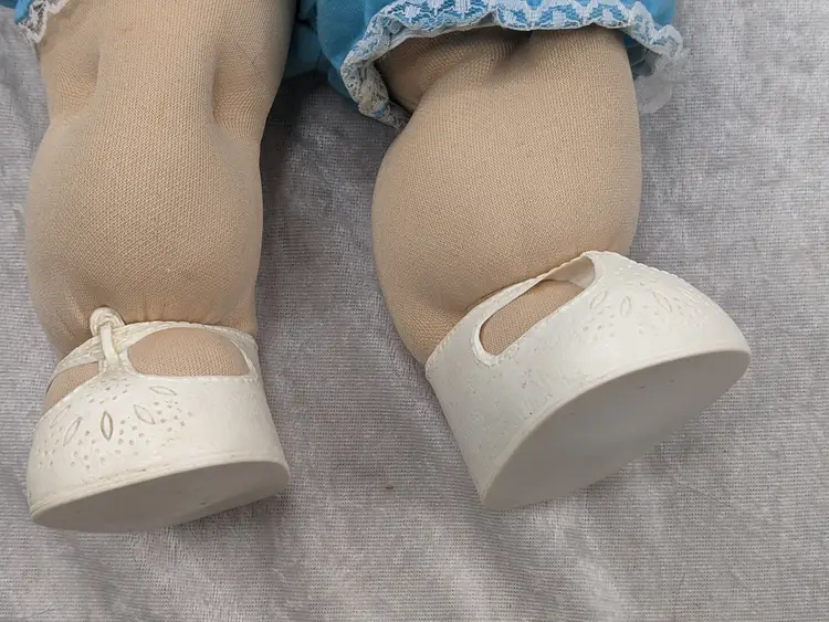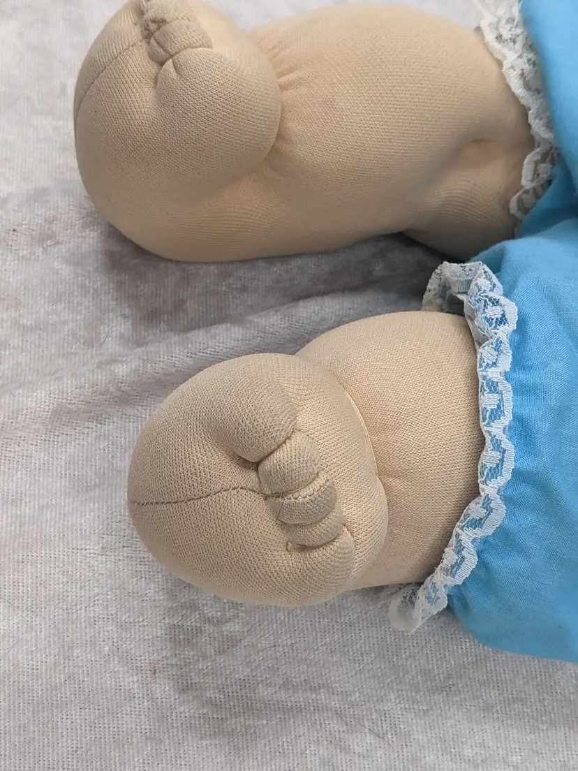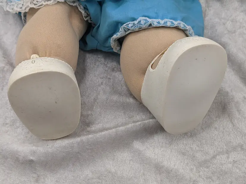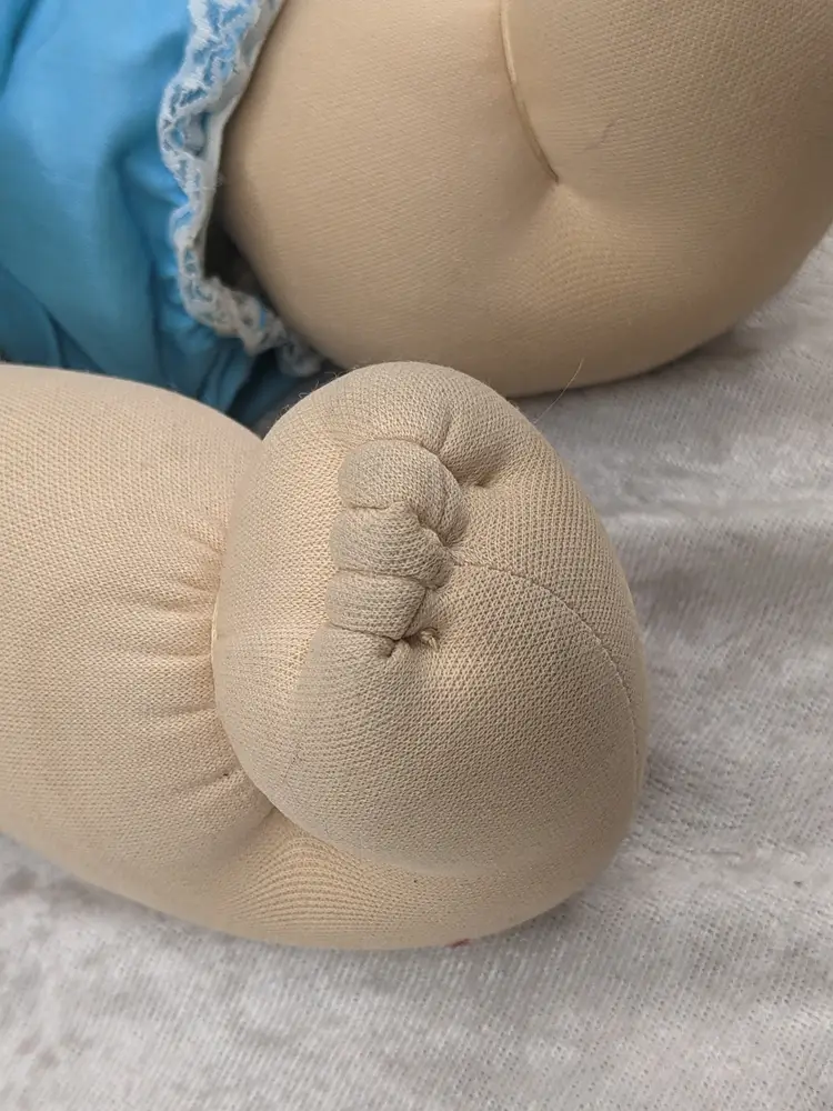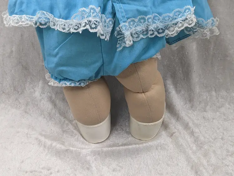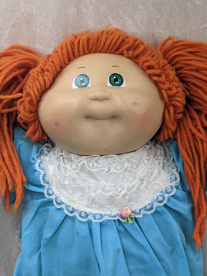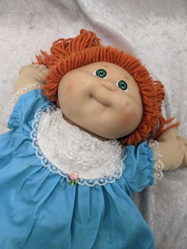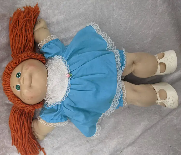 Cabbage Patch Kids Girl Doll Fully Dressed Original Clothes Soft Body Vintage red orange Hair Long in pig tails. 16ins 1980s Blue dress Panties Shoes 1982 LONG red yarn hair with Blue eyes. She is all dress up in her 80s style top and pants. .She is 17in tall From the 80s . .Very good condition Clean with no damage. The blue dress pant the elastic has lost its stretch, no weird smells. Please check the photos for details. Comes from a smoke free home. We do have pets
