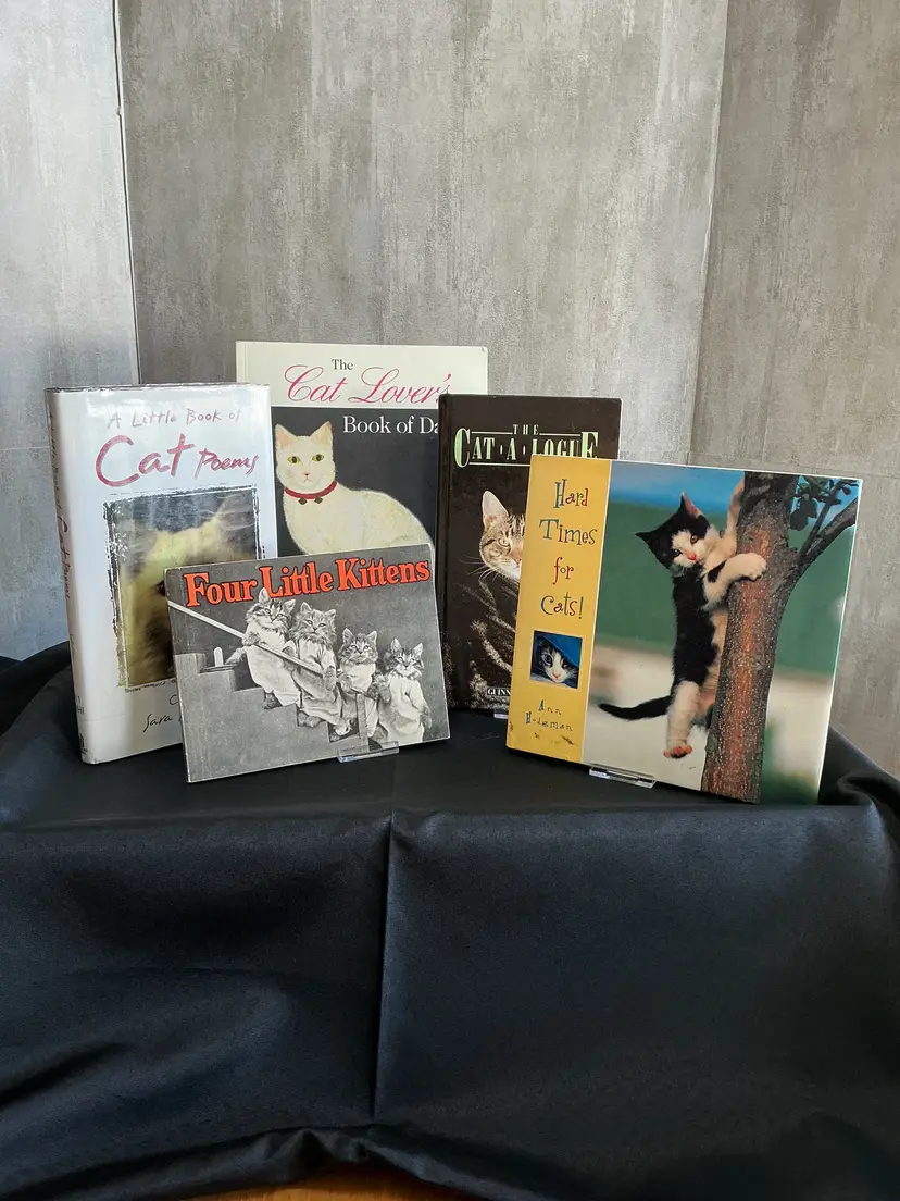 Titles include: Four Little Kittens(1982) The Cat-a-Logue (1989) A little Book of Cat Poems (1998) with dust cover The Cat Lover’s Book of Days(1997) Hard Times for Cats(1992) Condition as shown in live auction