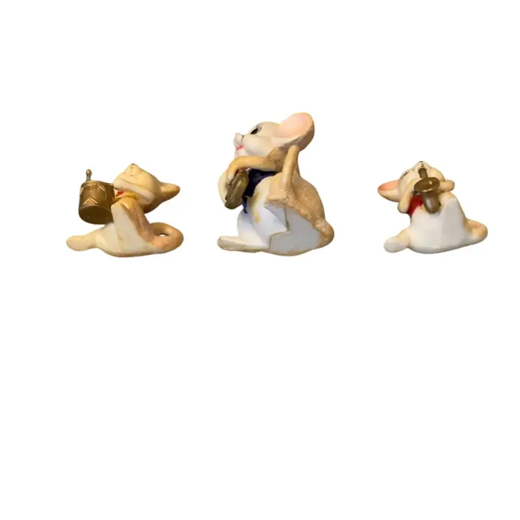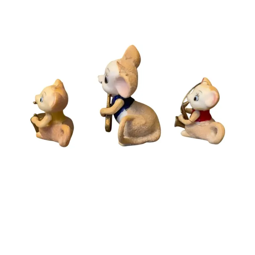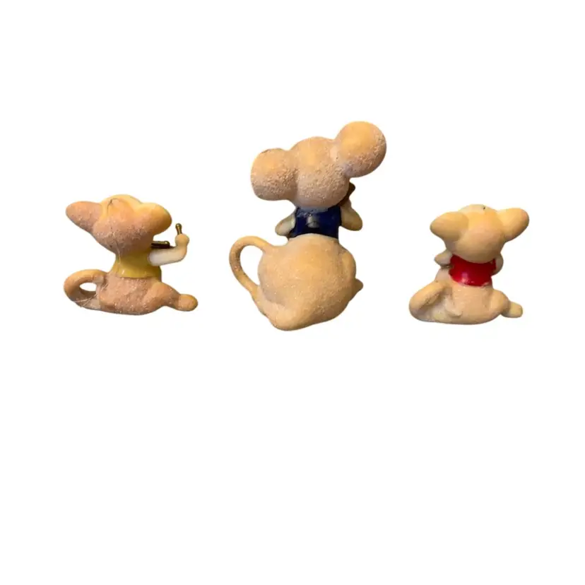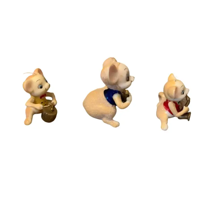 Celluloid Plastic Mouse Band Christmas Ornaments 2 X 2 & 2 2 1/8 X 3 Inches