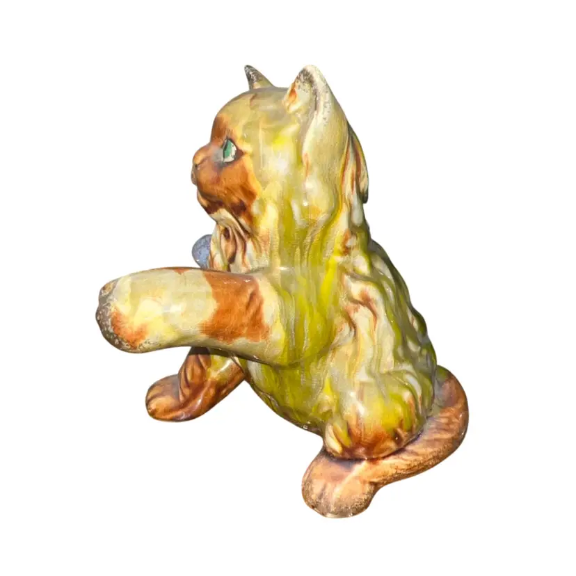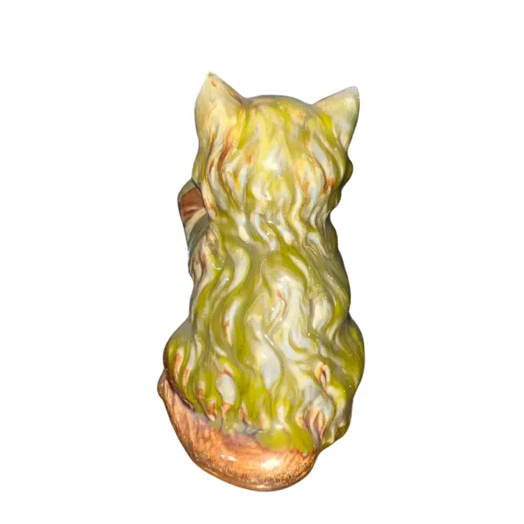 Ceramic Drip Glaze Green Eyed Cat Figure Mid Century modern Vintage Gold Paws