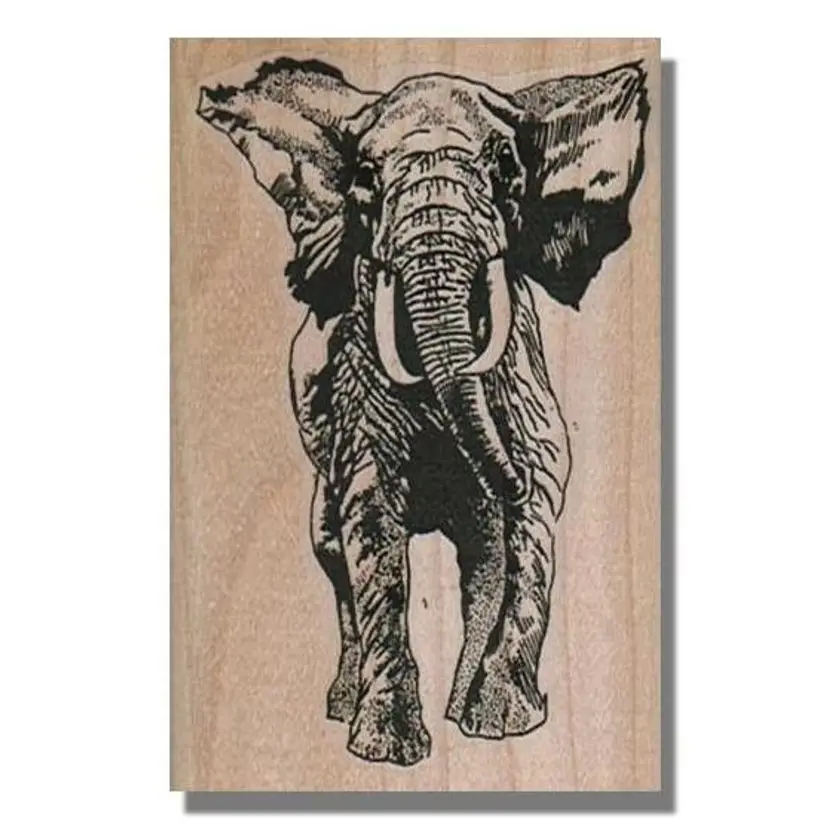 Charging Elephant Rubber Stamp Size: 3 x 2 inches Wood Mounted Red Rubber Handmade • Perfect for card making, gift tags, scrapbooking, party invites, journaling, mixed media and craft projects