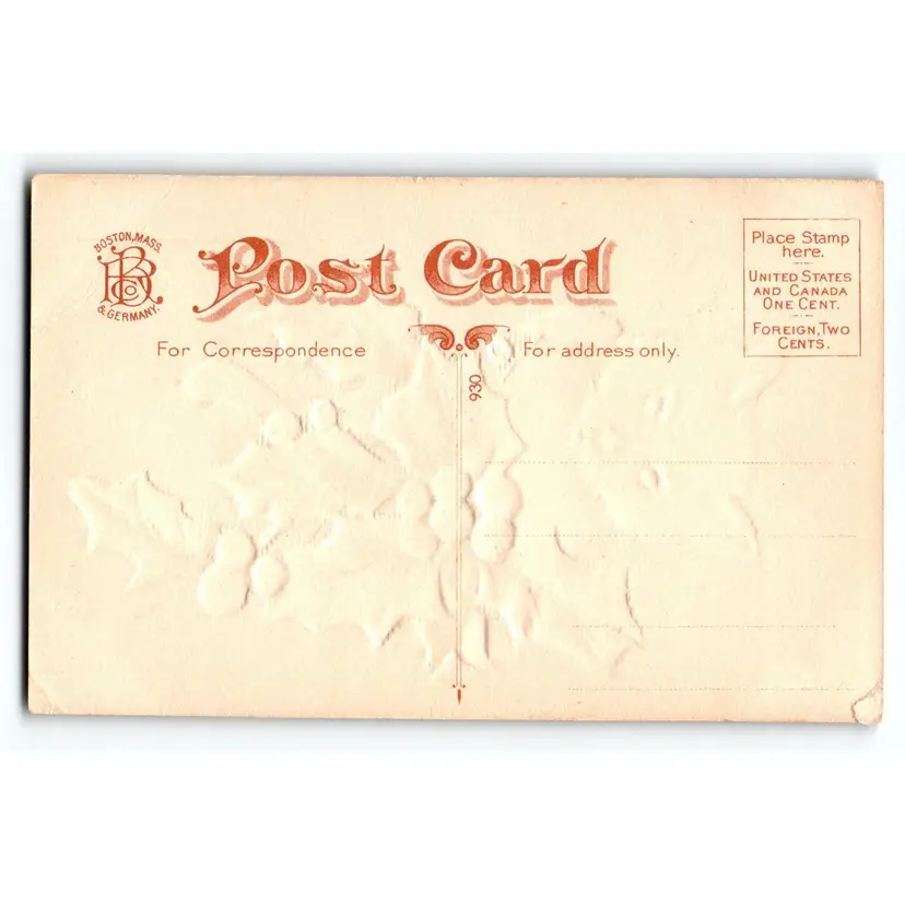 This vintage postcard features a charming kitten with holly leaves, wishing the recipient a Merry Christmas. The lithograph print is embossed and has a divided back, making it an excellent addition to any collection of holiday greetings. The card was manufactured by H.I. Robbins in 1907, making it a pre-war original. The postcard is unposted and in standard size, measuring 5.5 x 3.5 inches. It is made of paper and depicts a cat, one of the many popular themes for holiday postcards. The card is perfect for anyone looking to add a unique and vintage touch to their collection of postcards and holiday memorabilia.