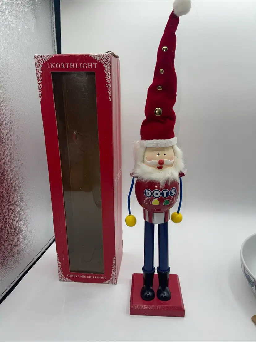 This Santa figurine comes in the original box. It’s by the north light Kandy lane collection. It stated 2015 on the box. This is the dots can’t Santa .