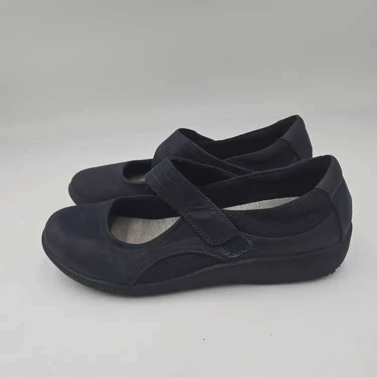 CLARKS Women's Blue Sillian Bella Mary Jane Flat Slip-On Shoes Size 9 Comfort