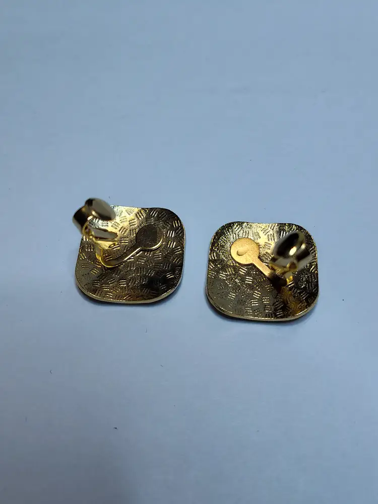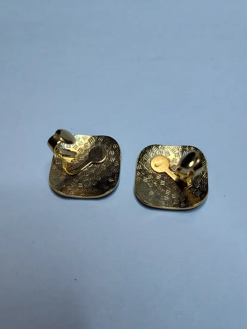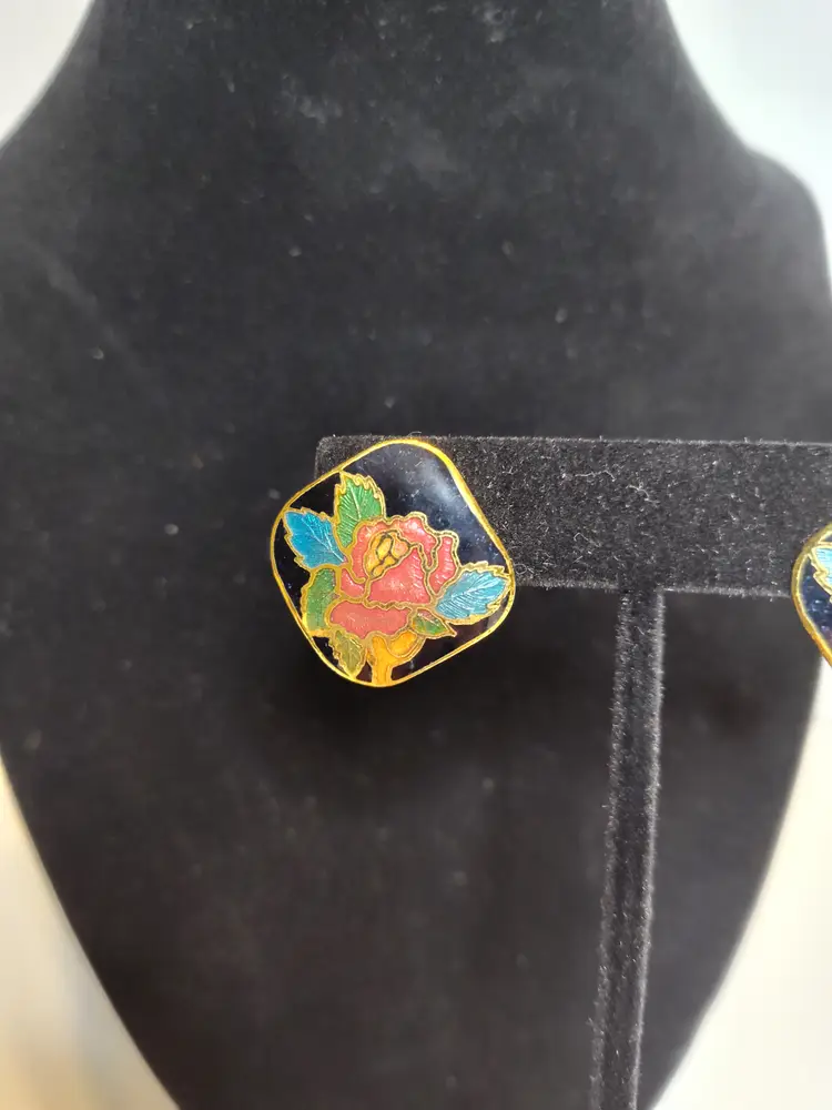 Vintage gold tone .75" clip earrings cloisonne with bright flowers.