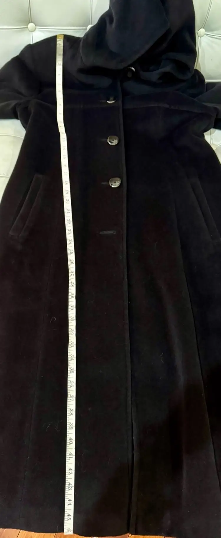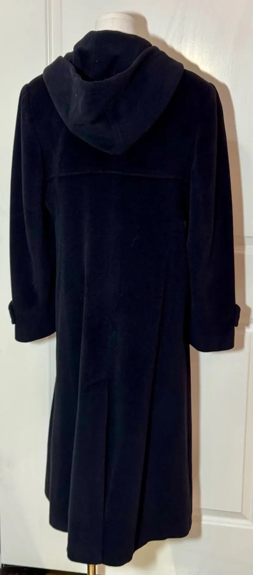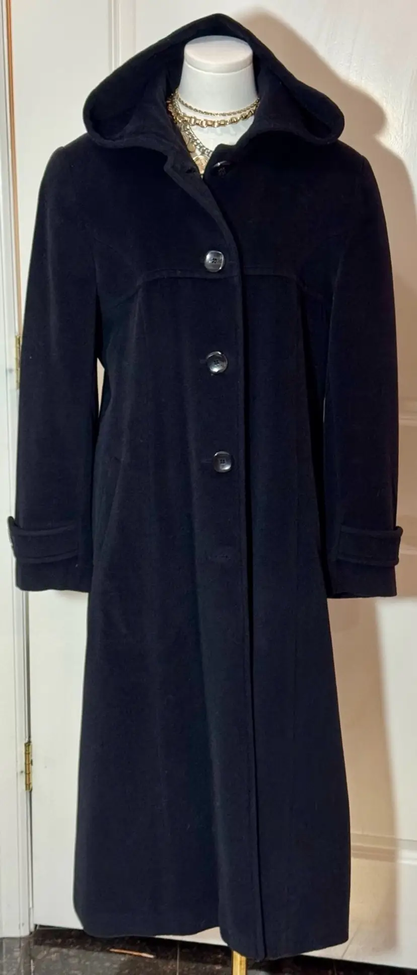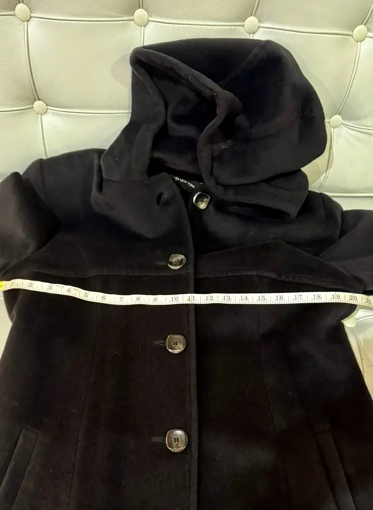 008. Coat Jones, New York Black Maxi With Hood Measurements In Photos