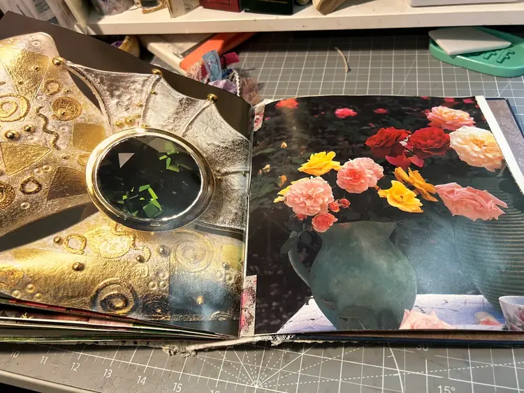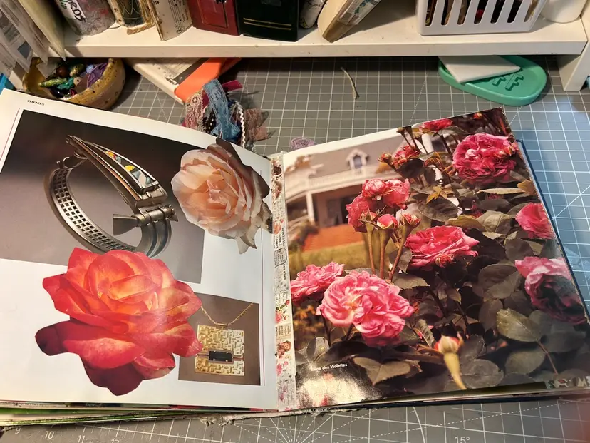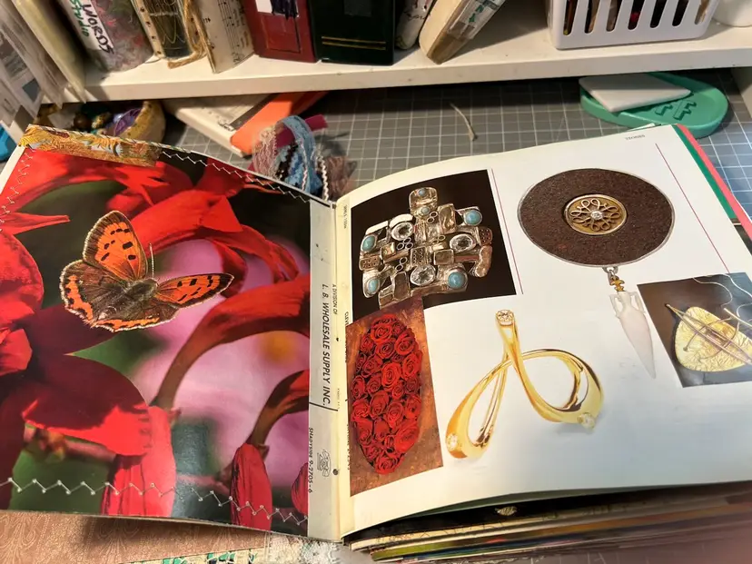 Beautiful images of birds, flowers, jewelry, butterflies Just look at the lovely photos, keep memories, secret pockets of goodness and pleasure Approximately 9x9, 3 signatures, 120 pages
