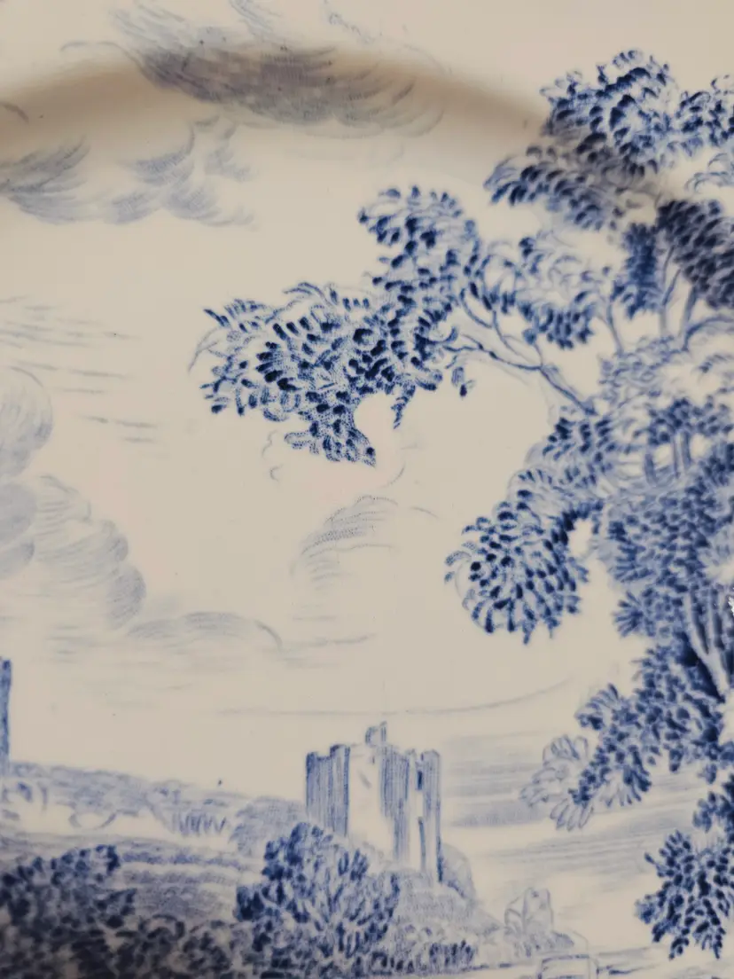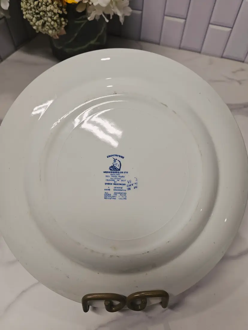 Description: This Wedgwood dinner plate in the Countryside Blue pattern showcases a serene pastoral scene rendered in soft cobalt tones. The imagery evokes classic English countryside charm, with cottages, trees, and gentle landscapes inviting a sense of nostalgia and calm. Its timeless design pairs beautifully with both traditional and eclectic table settings. Made by: Wedgwood Pattern: Countryside Blue (discontinued) Place of Origin: England Type of China: Dinner Plate Measurement: 10 inches Markings: SEE PIC Condition: Gently Used. Utensil marks upon close inspection. SOLD AS IS NO RETURNS Shipping: Most Mondays, Wednesdays & Fridays SKU:250216M