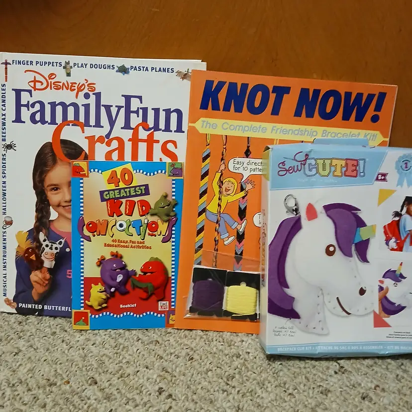 Hardcover Family craft book, 1 booklet, bracelet making kit, Unicorn bag clip on kit.