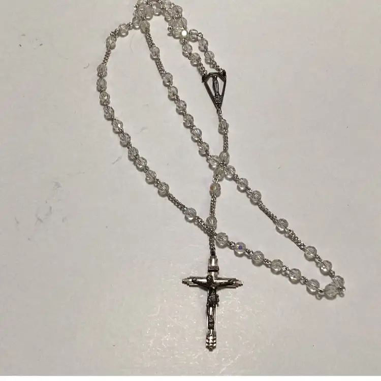 Vintage signed Diroma Sterling Silver and crystal rosary,made in Italy ,needs a good cleaning,the sparkle is fabulous.