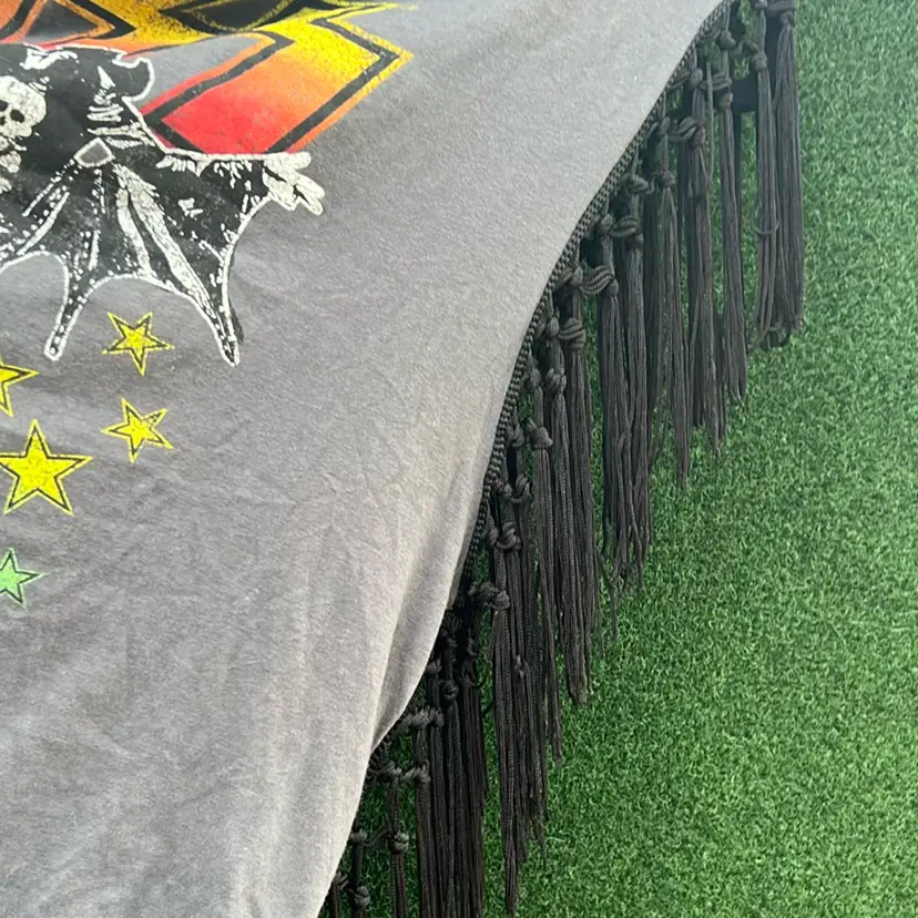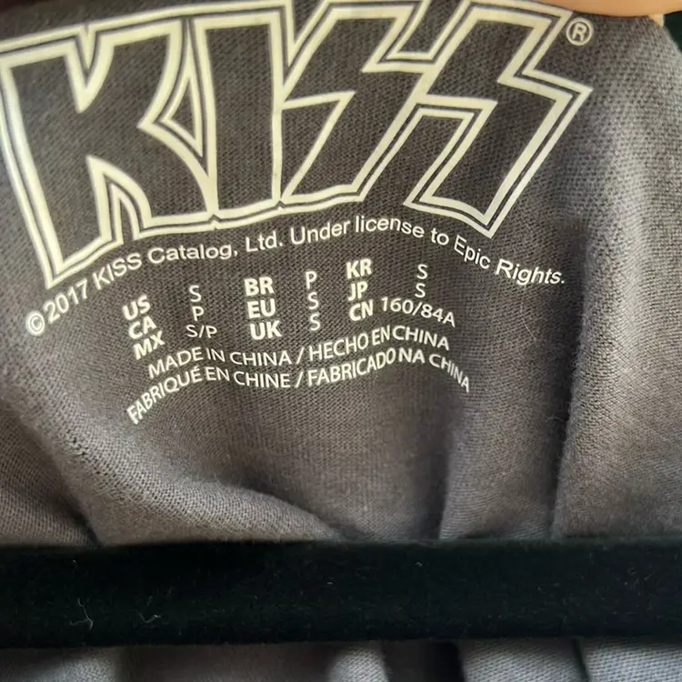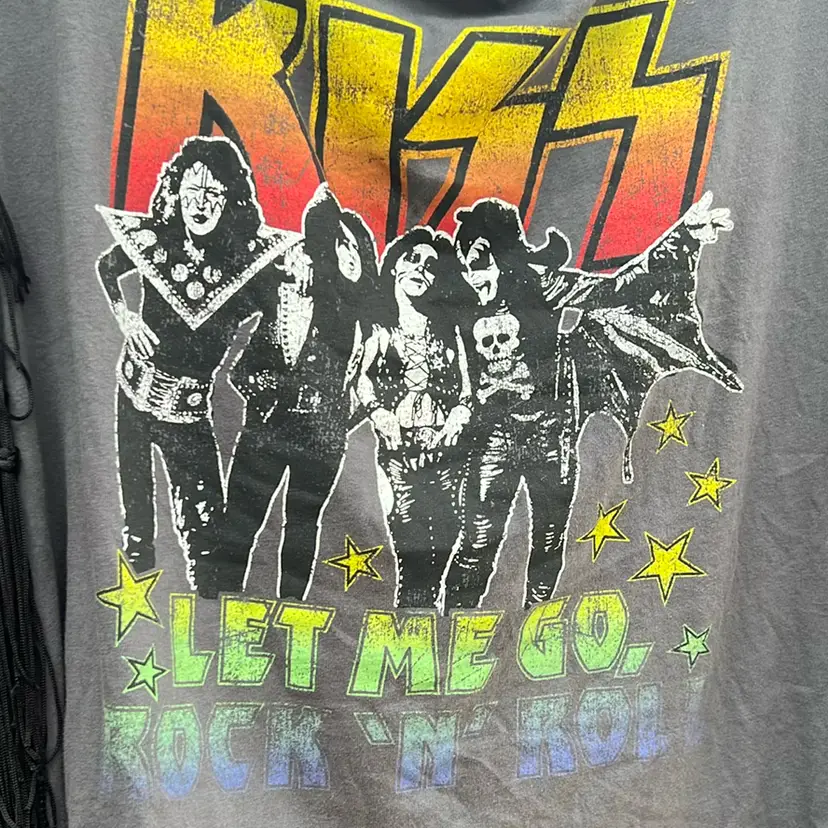 Custom made fringed out kiss. Let me go rock and roll cropped T-shirt. Tagged as a small. Pit to pit is 19 inches and length is 16 inches.