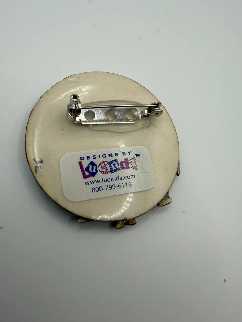 Approximate Measurements .3 ounces 1.75 inches diameter .25-.5 inches from top of the pin to the back of the pin