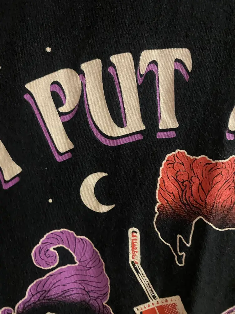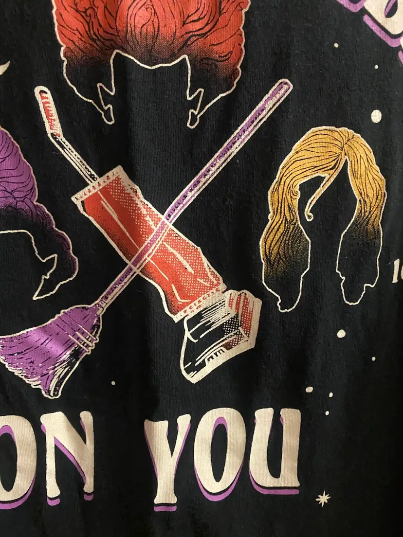 Disney Womens Hocus Pocus Black Graphic Tee T Shirt XL 44” I Put A Spell On You Great condition with no fading , wear, stains or damages Pit to pit is 22” across for bust measurement of 44” Length 26” Soft cotton / polyester blend fabric