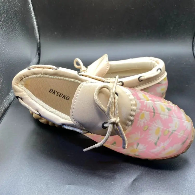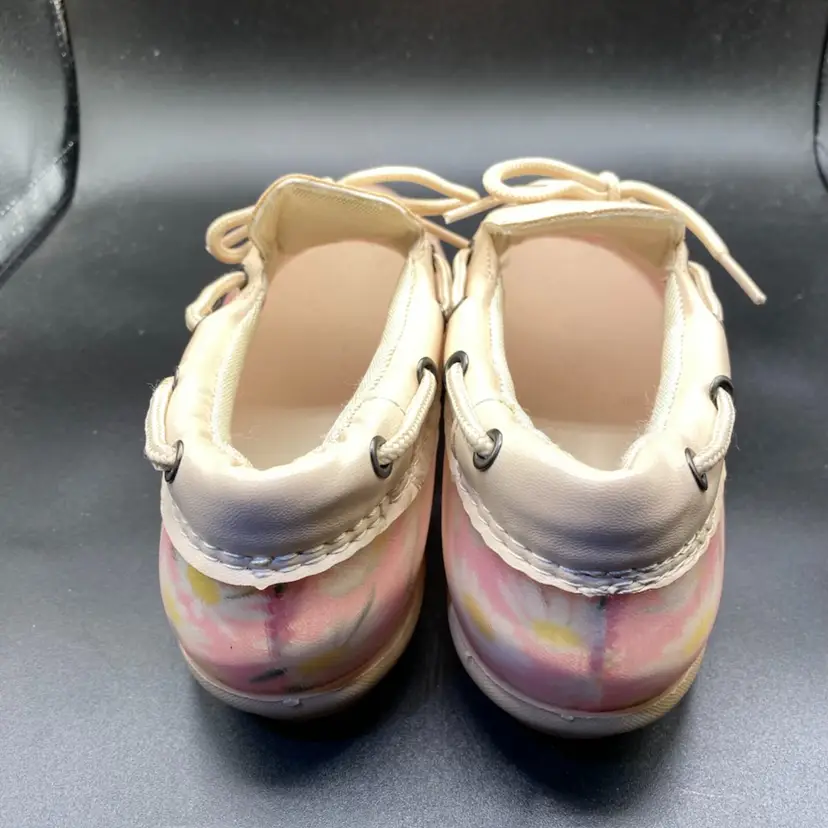 NEW-Pink and tan with daisies boat shoes. Size 6
