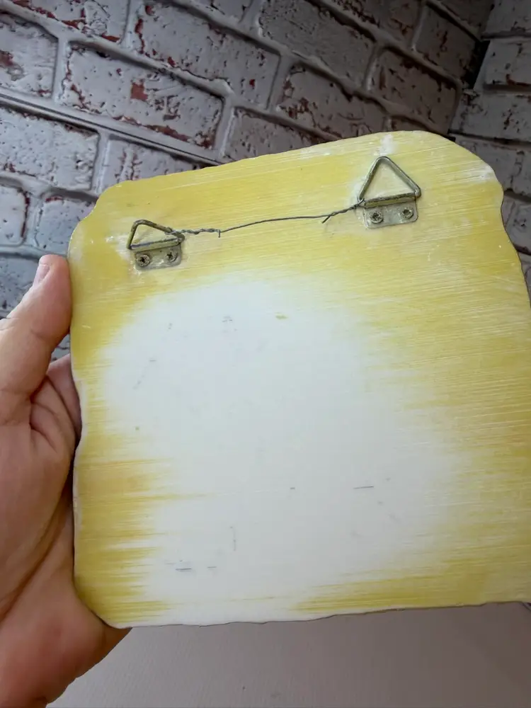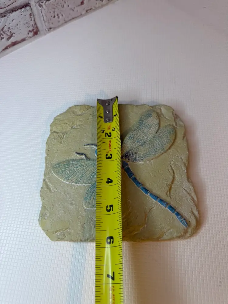 Measures 6x6 the back was mark with permanent black marker and I had my husband try to take it off and that why you see the white on it. On the back part there is tiny chipping but not see able to when on the wall