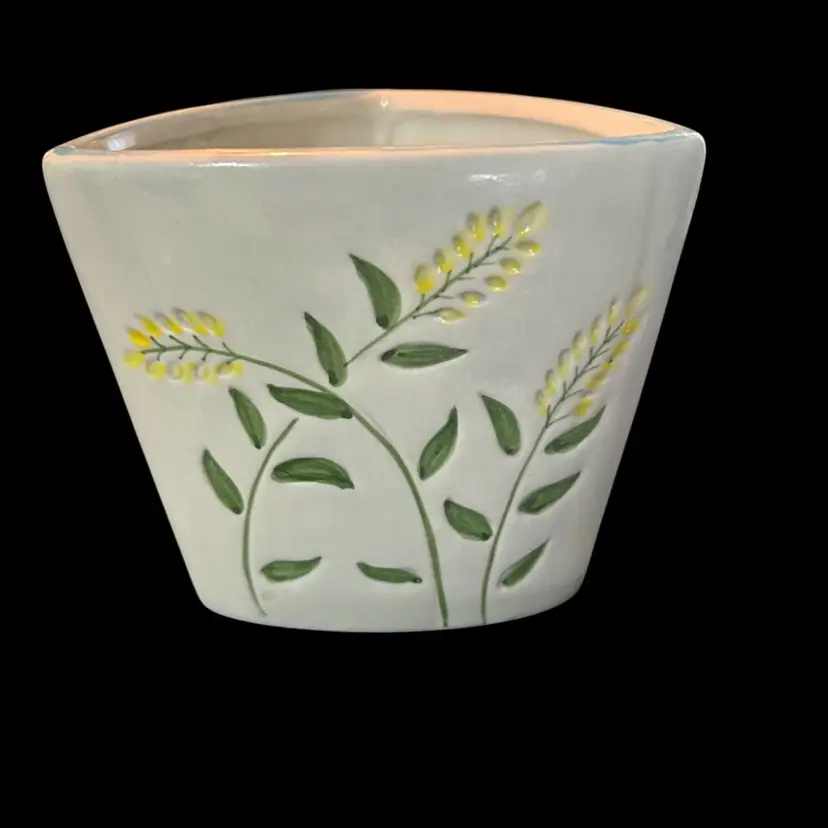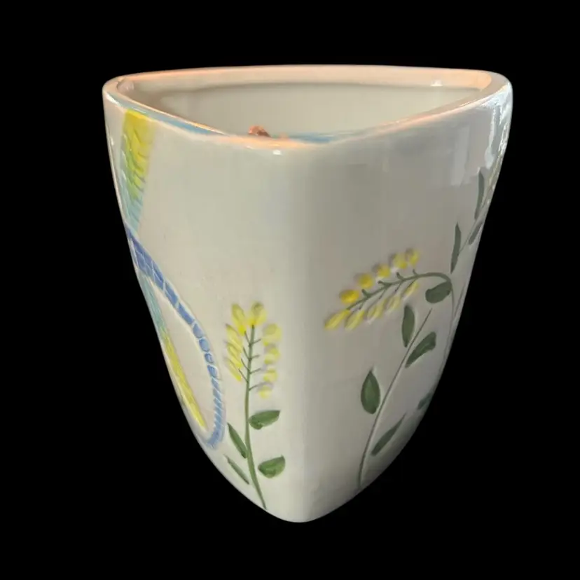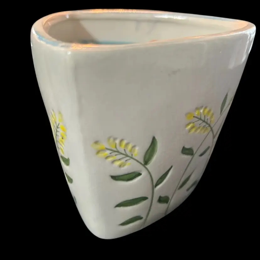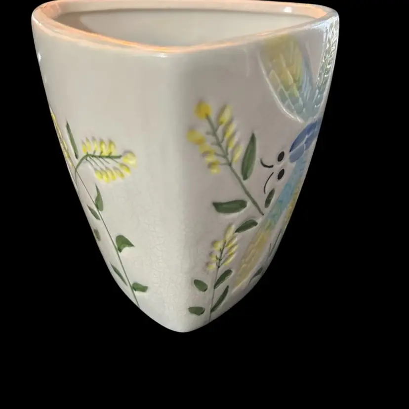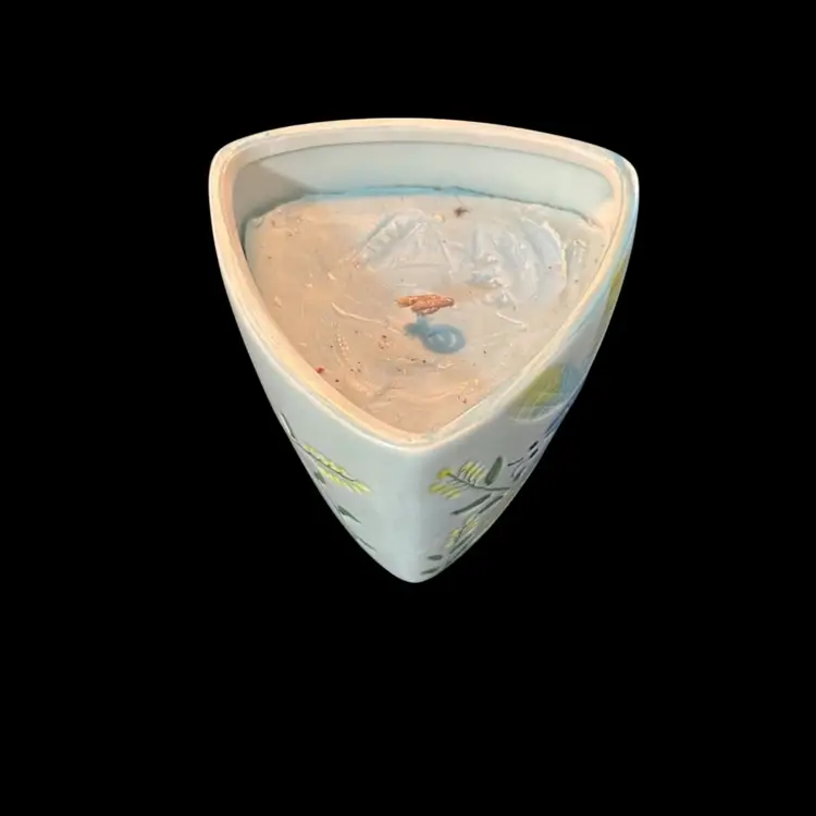 This unique candle with flowers and dragonfly is in mint condition. I believe the candle scent is sea breeze based on the sticker on the bottom. Rumor is that dragonflies have been known to be lucky. It measures approximately 4” tall and 4” wide. (BSA1)