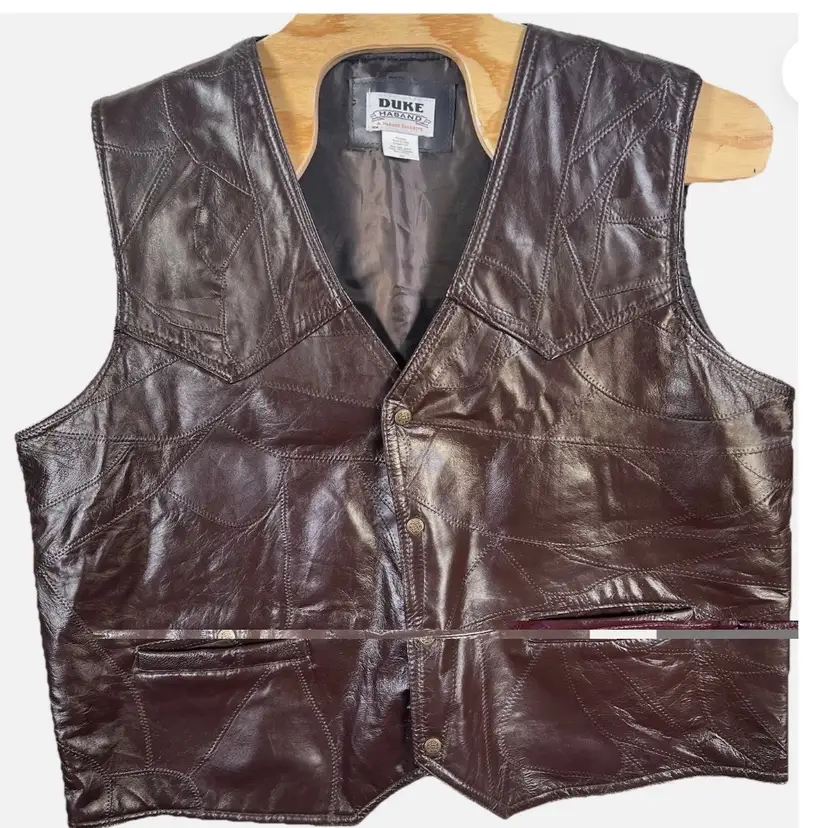 Duke Haband, Genuine Leather Vest, Men’s 3XL, Brown, Snap Button Pockets