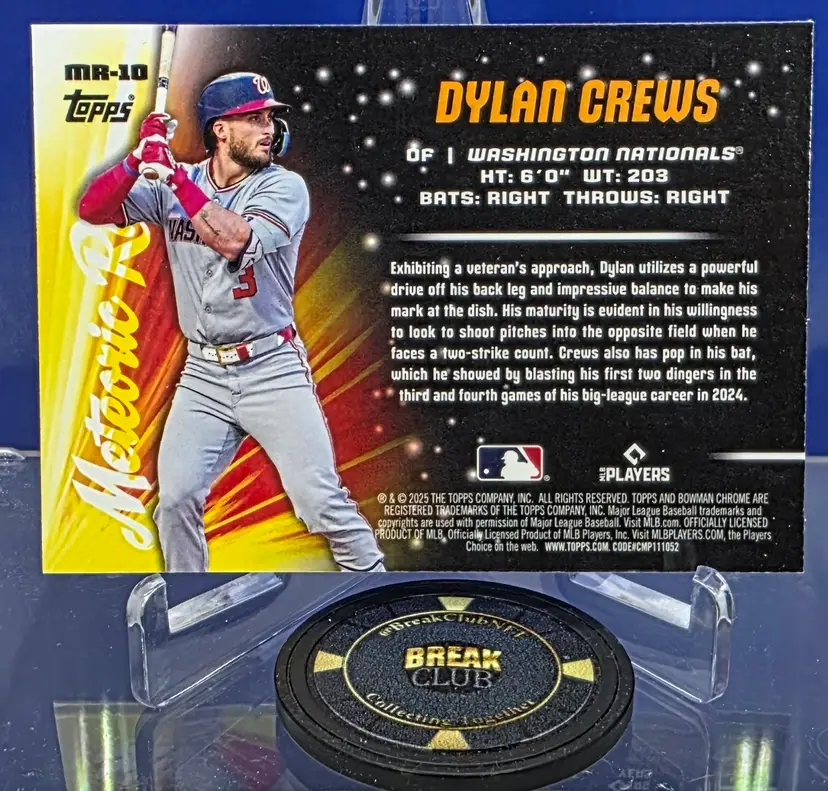 Dylan Crews 2025 Bowman Chrome Mega Box Meteoric Rise Mojo Refractor RC #MR-10 Washington Nationals