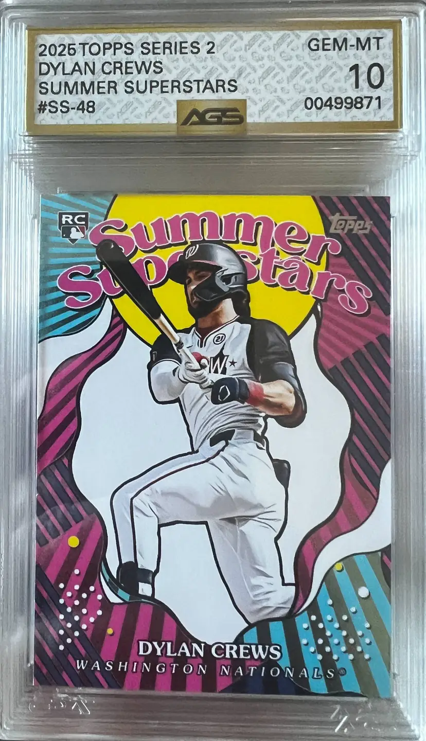 Check out this Dylan Crews Summer Superstars card from the 2025 Topps Series 2. A gem for any Washington Nationals fan or card collector.
