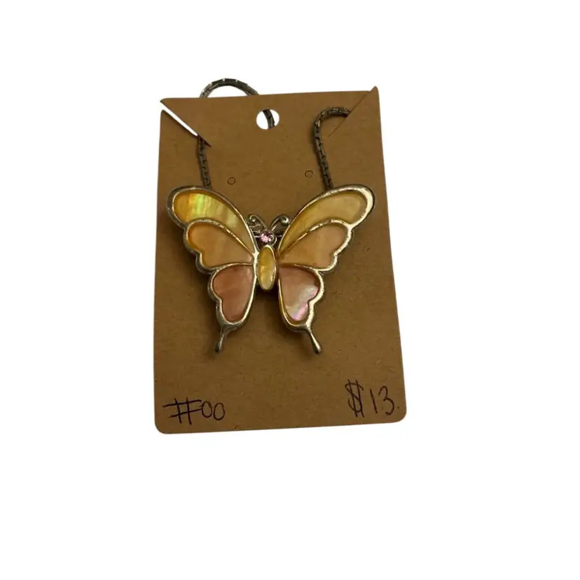 Enamel On Silver Toned Metal Butterfly Necklace 18” Made In Korea Clasp