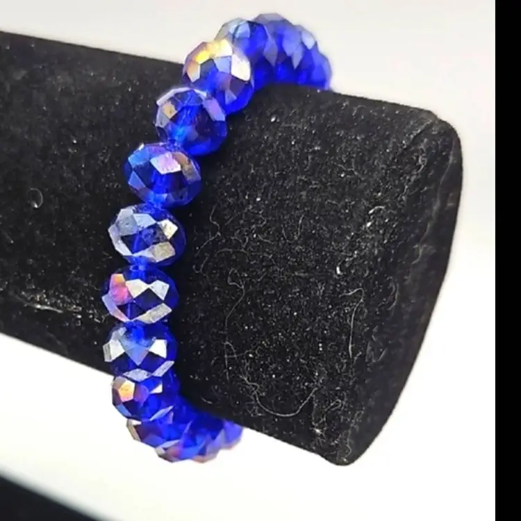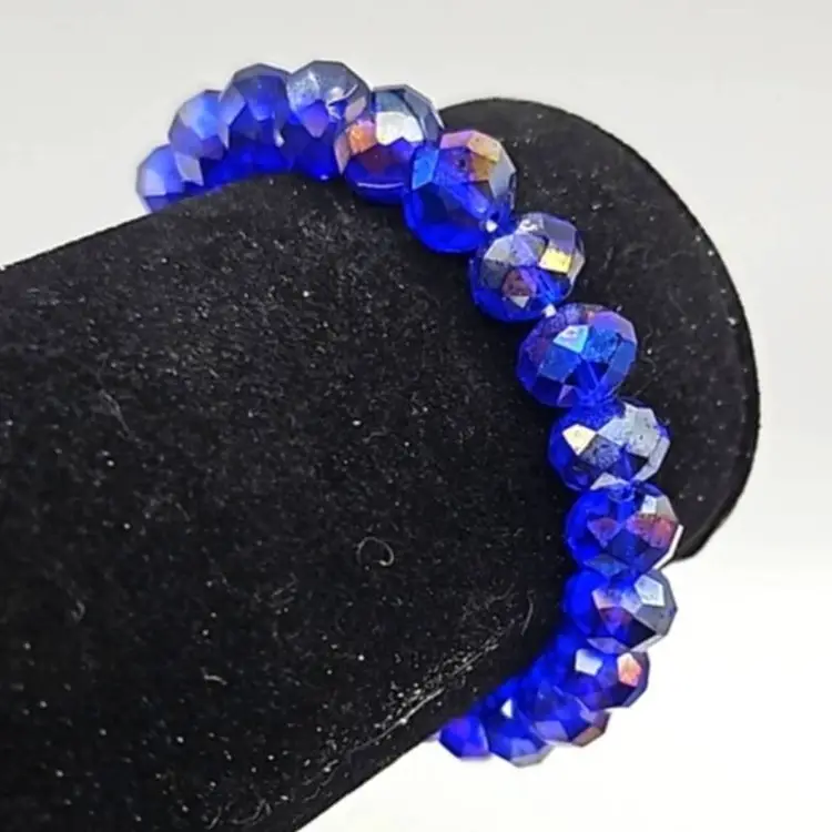 Faceted blue glass stretch bracelet 2 1/2-3"