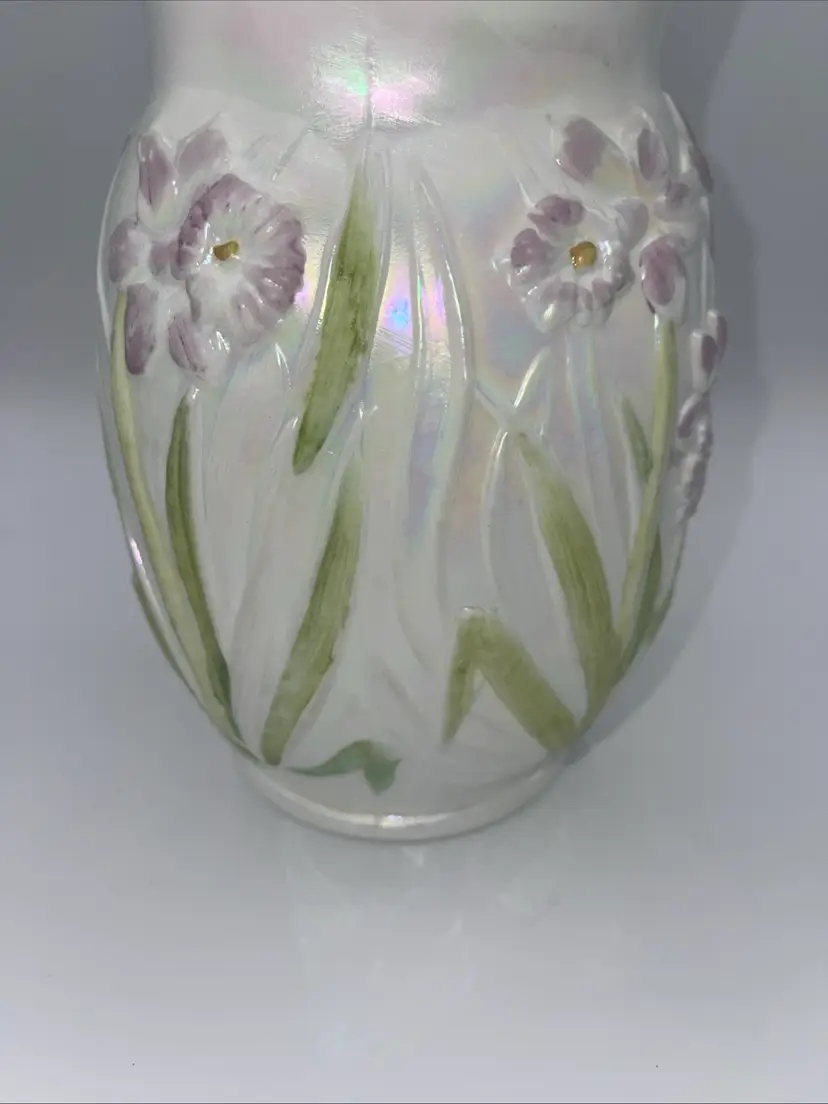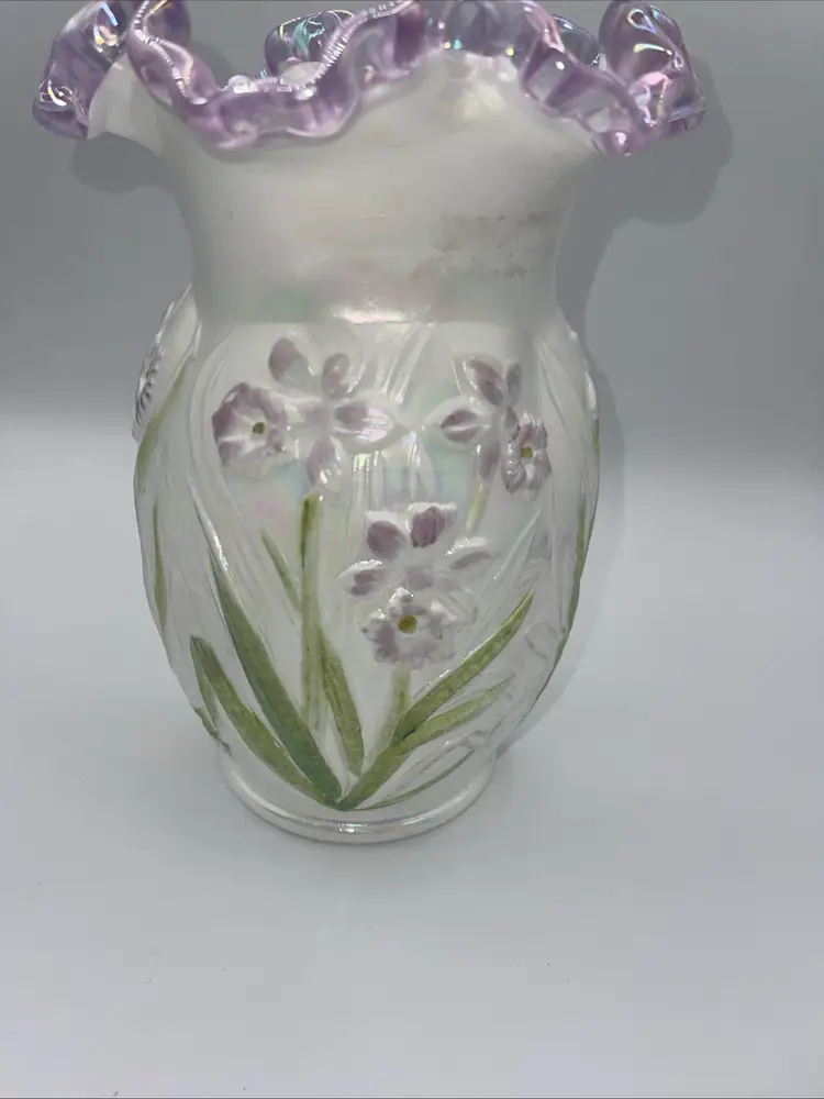 Fenton Opalescent Easter Daffodil Vase Lilac Purple M Olmstead 8.5”
