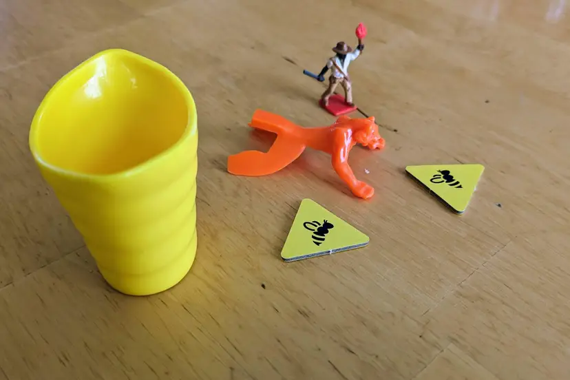 This is the Kickstarter edition of the game. It includes promo cards and pre-painted miniatures. The "Crouching Tiger, Hidden Bees" expansion with instructions sheet is included in the main box.