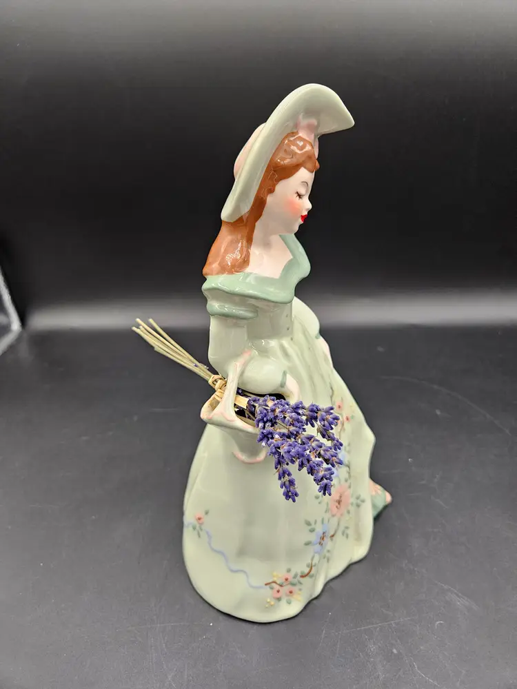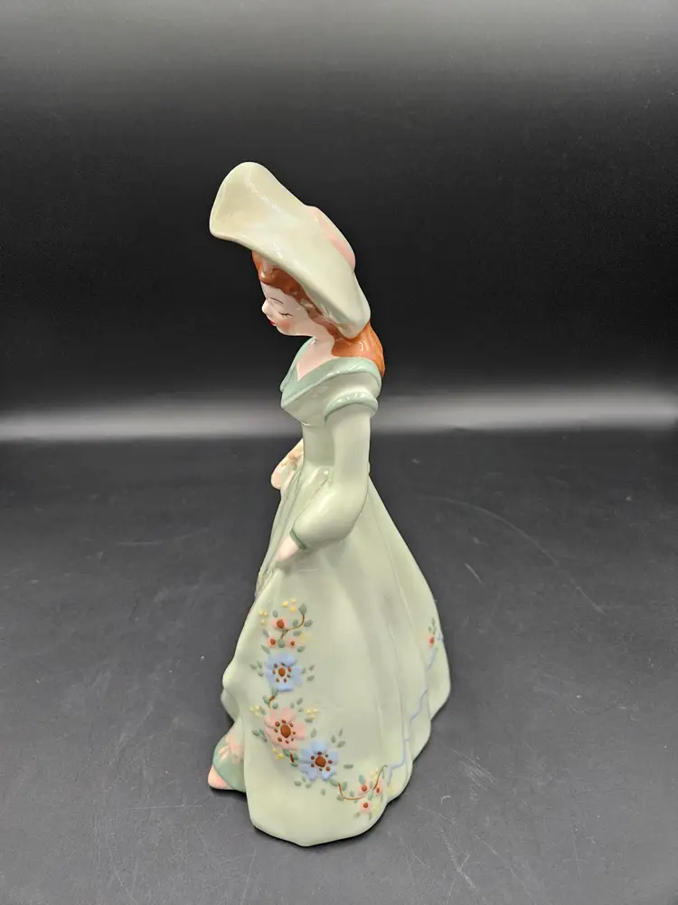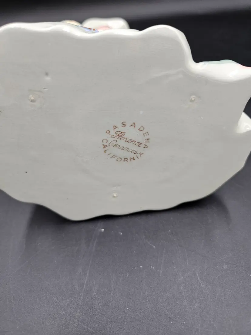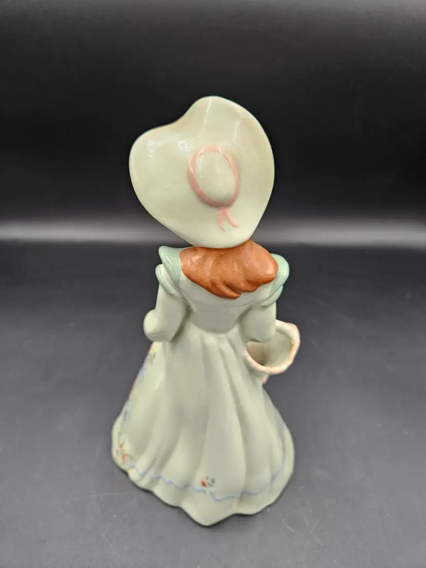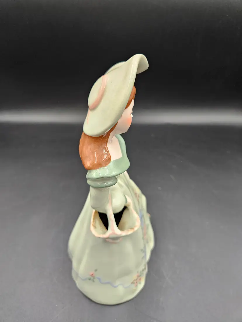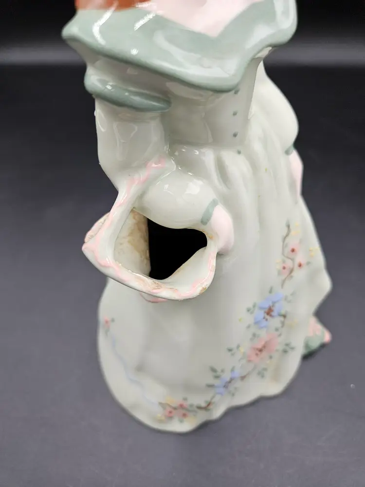 No chips or cracks. Some crazing and stains on inside of basket and some on hat and dress.