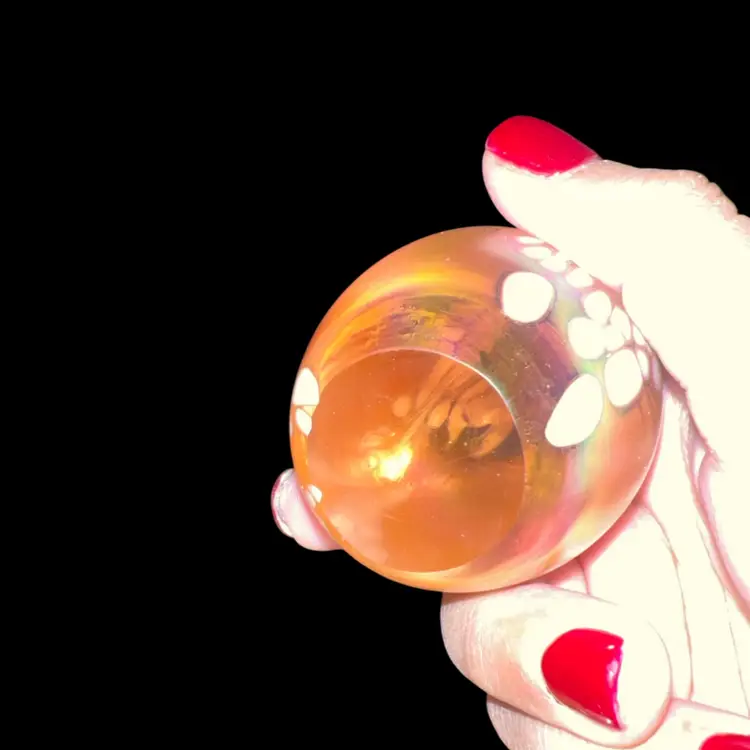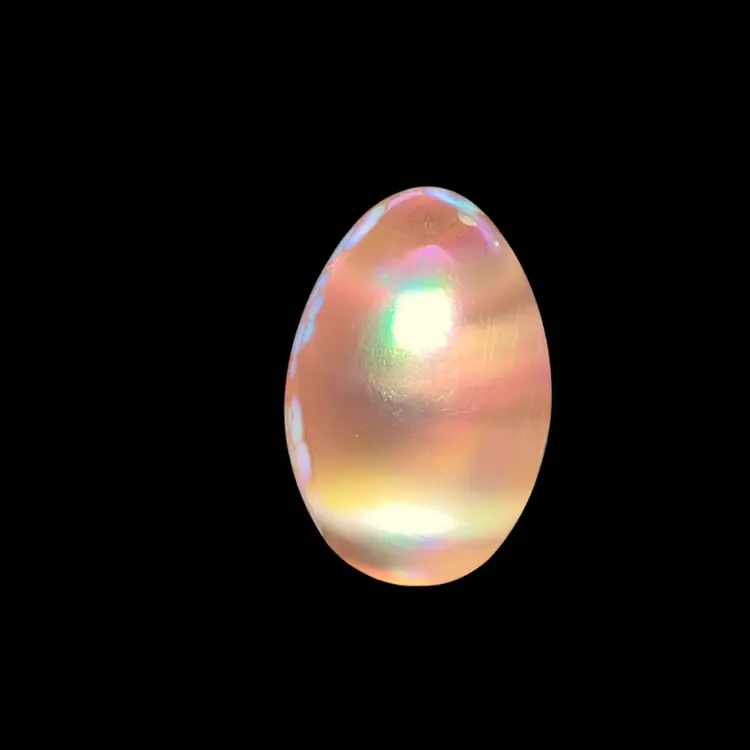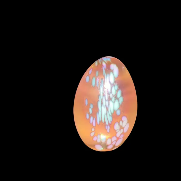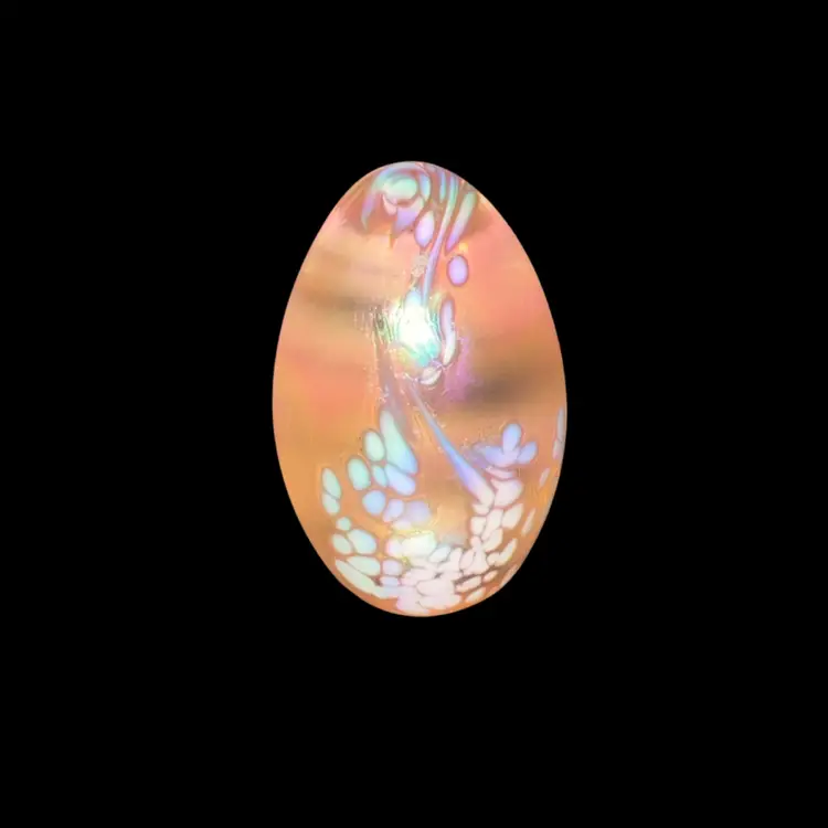 Glass Eye Studio (unsigned) Pink and White Confetti Iridescent Paperweight Egg